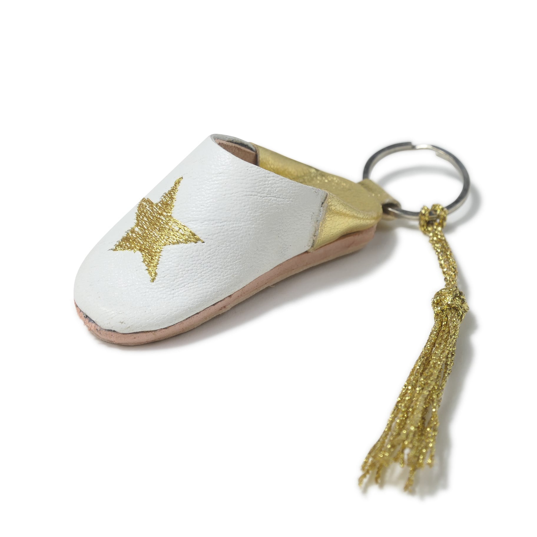 ホワイト&ゴールド(ゴールド スパンコール)レザー バブーシュ スリッパ