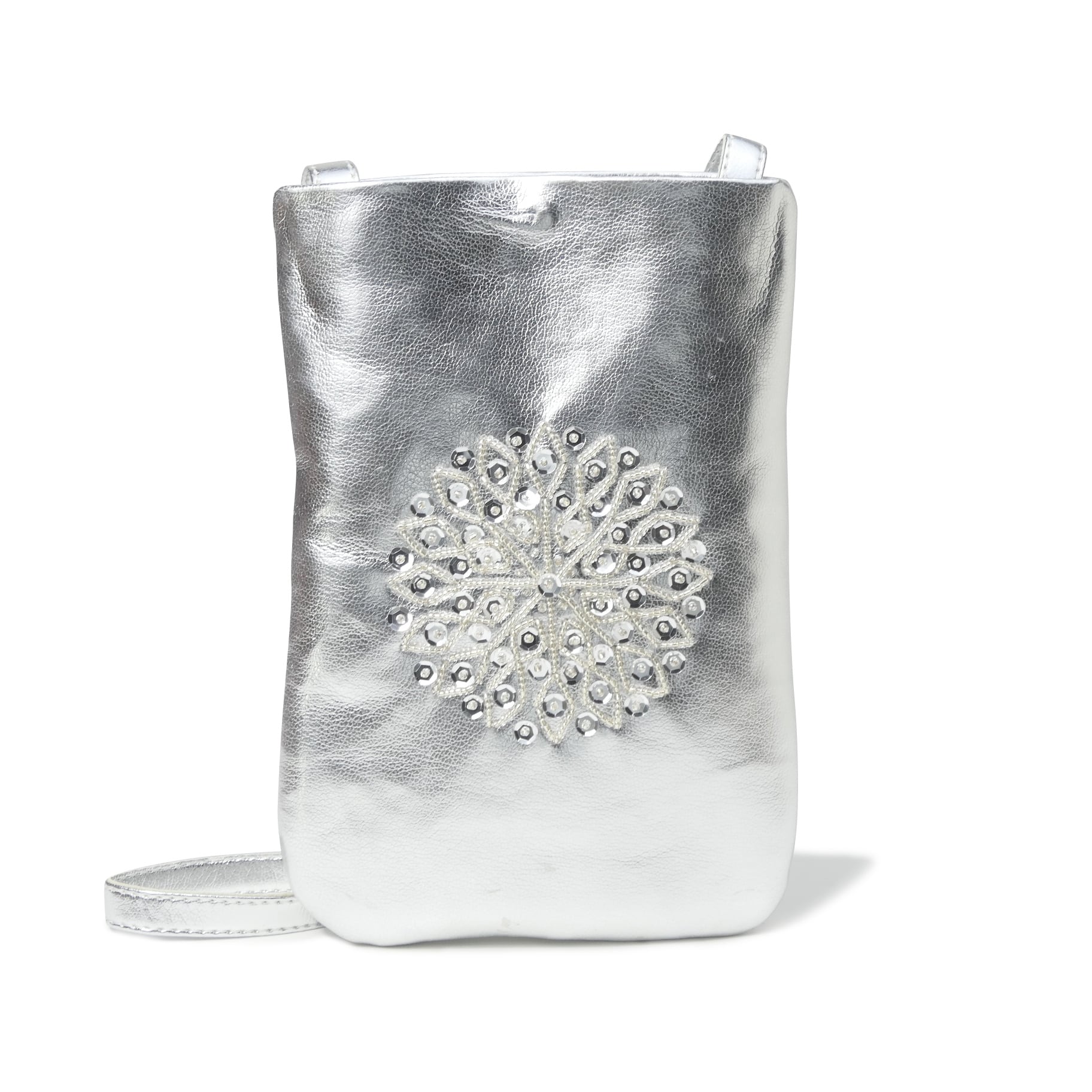 シルバー レザー スマホ ショルダーバッグ Lサイズ(スパンコール刺しゅう)モロッコ ポーチ