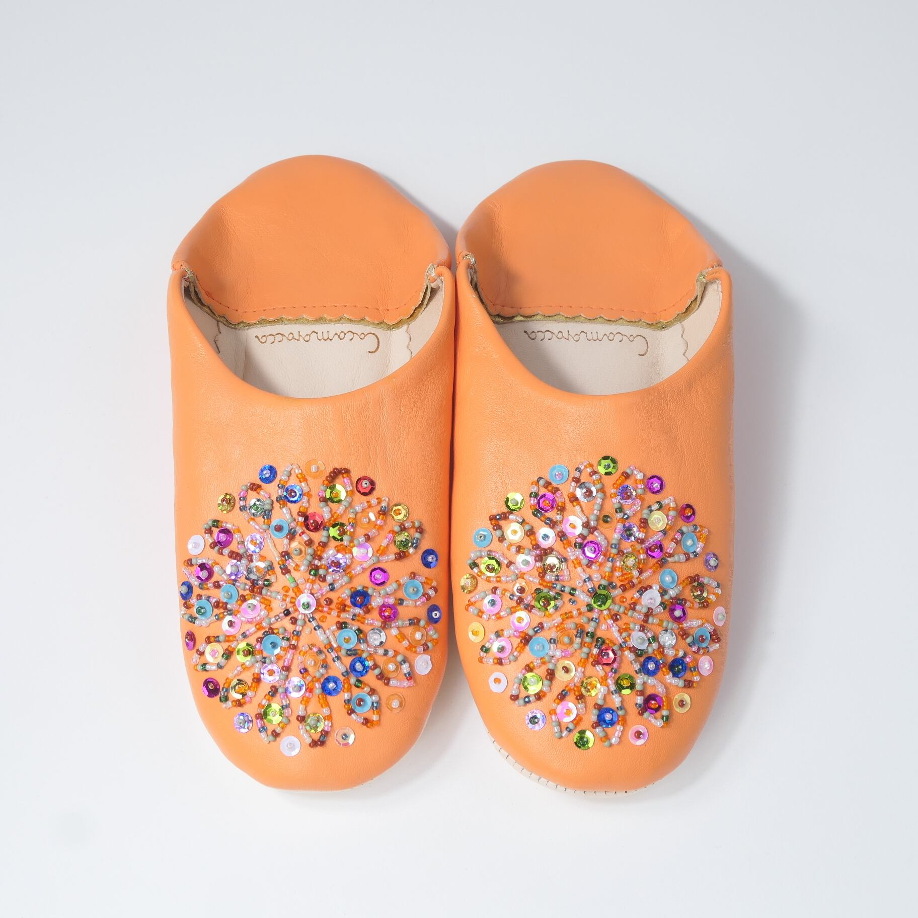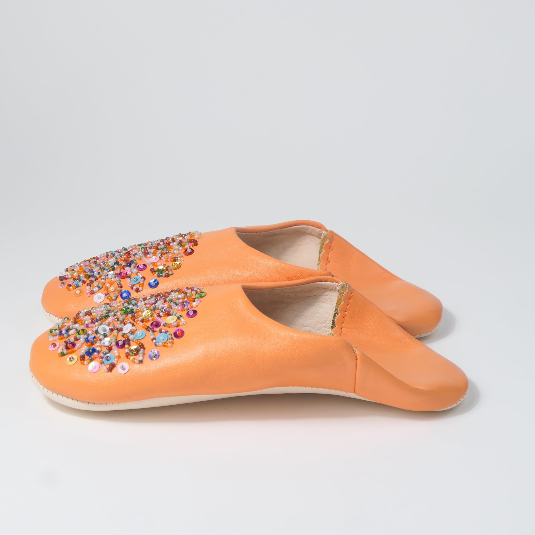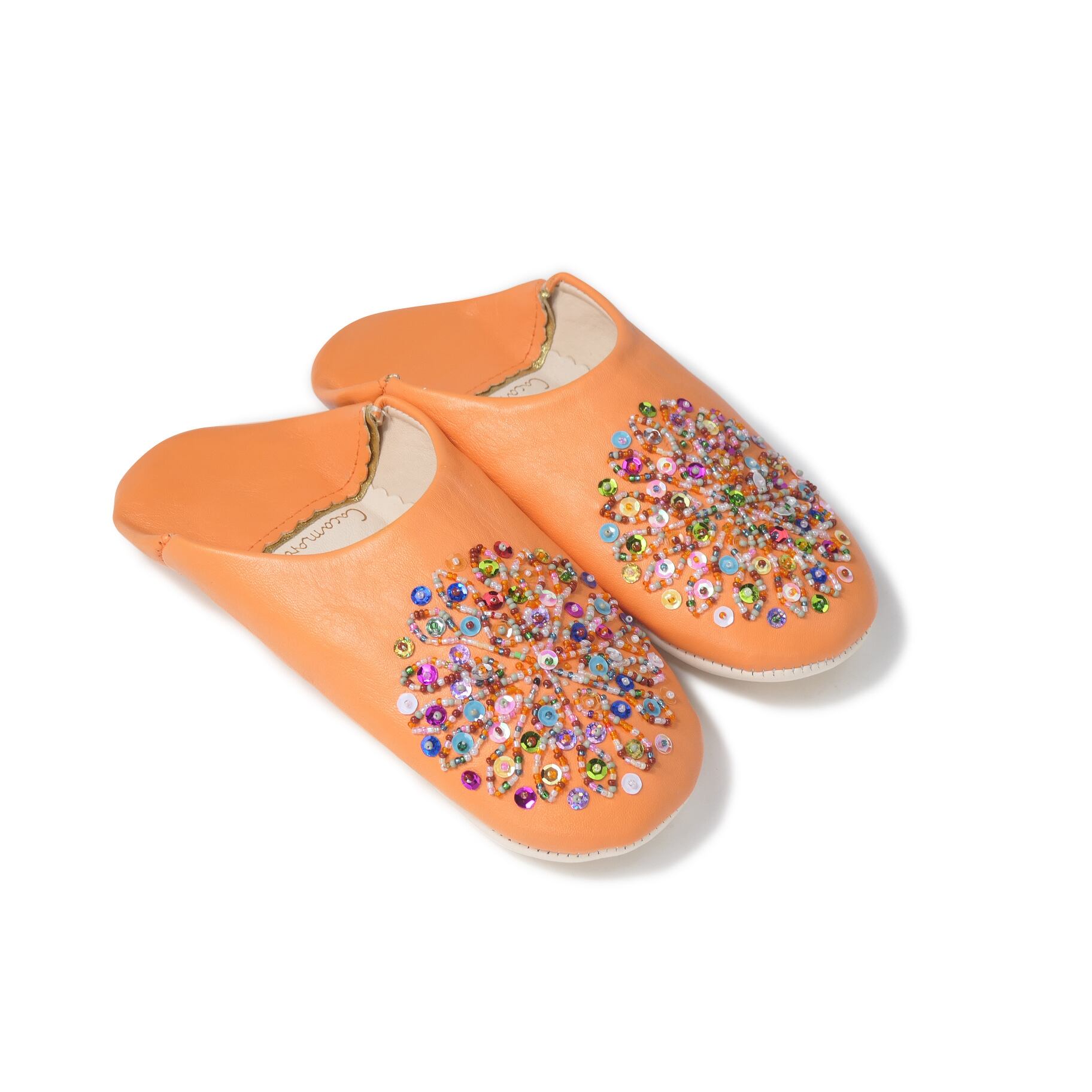 受注生産 オレンジ(ミックス スパンコール)レザー バブーシュ スリッパ