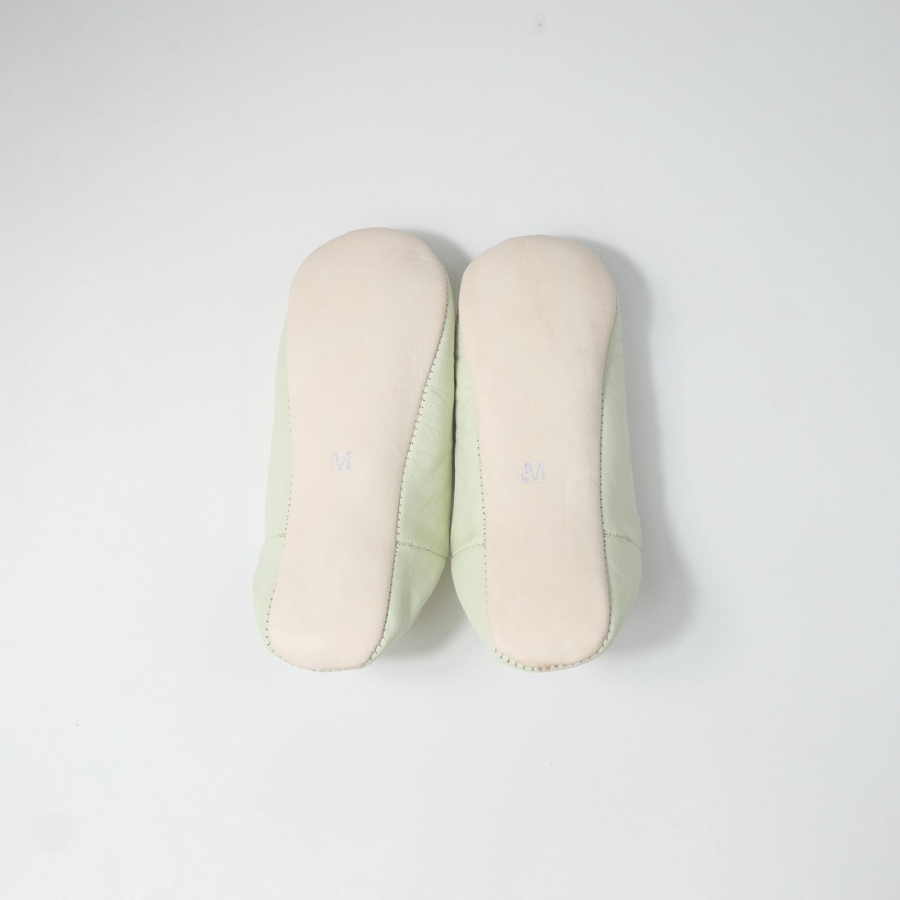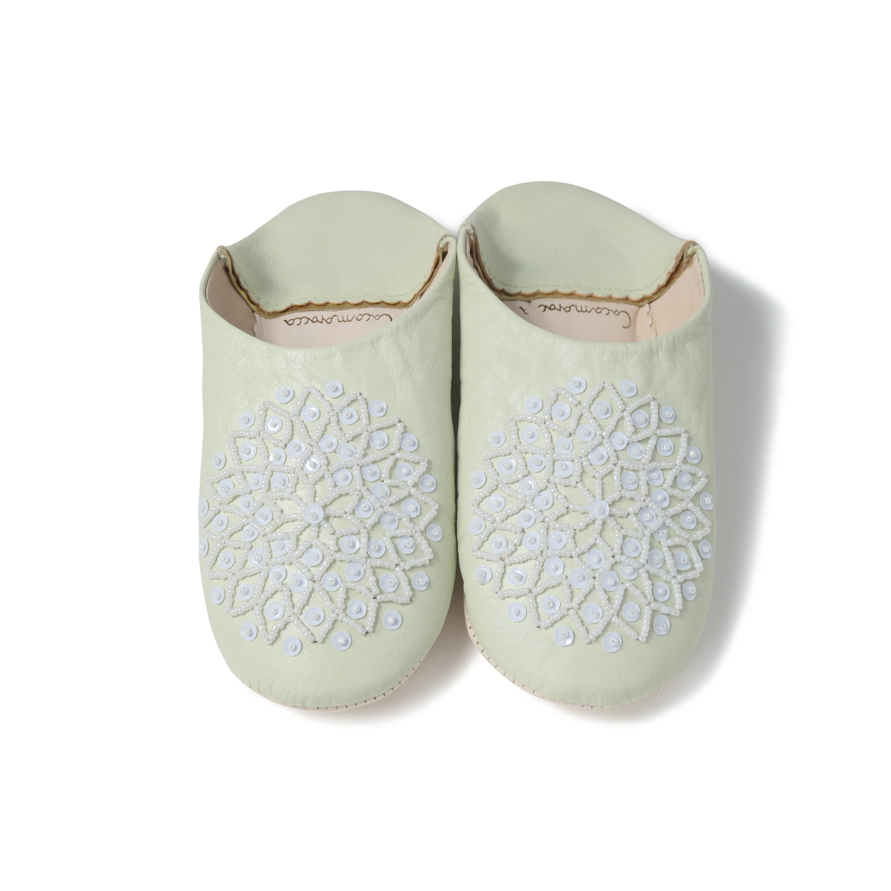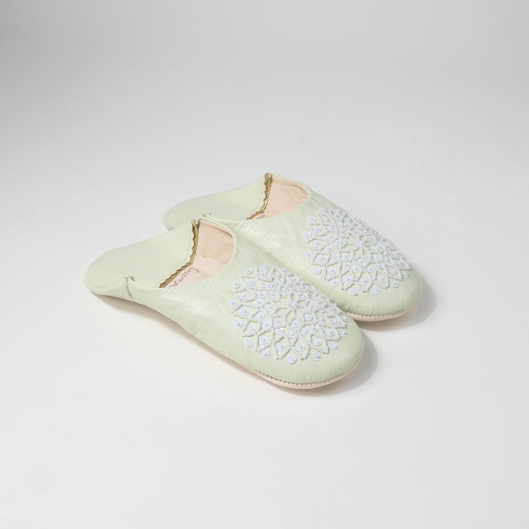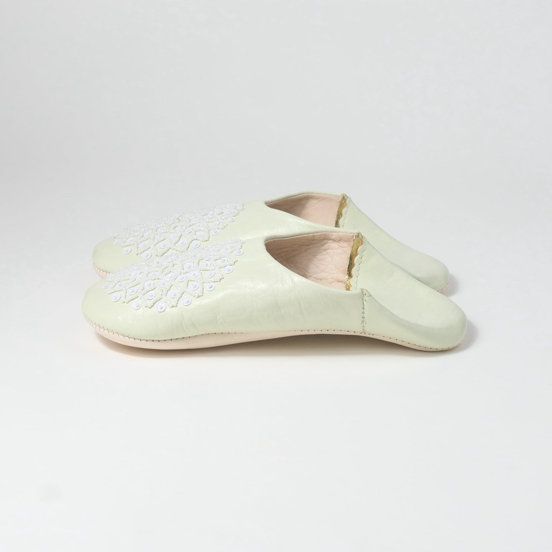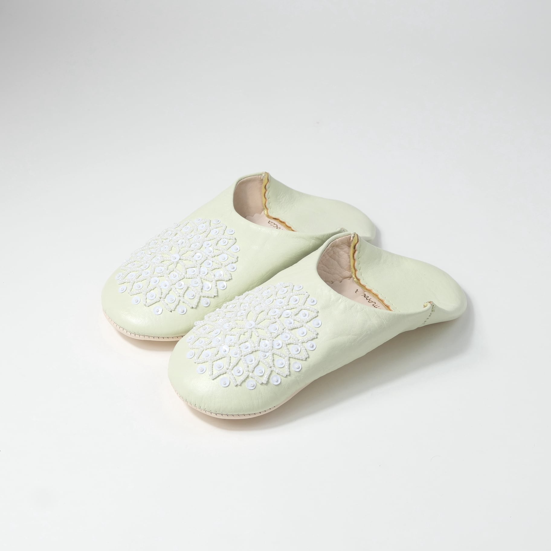 受注生産 ミントクリーム(ホワイト スパンコール) レザー バブーシュ スリッパ