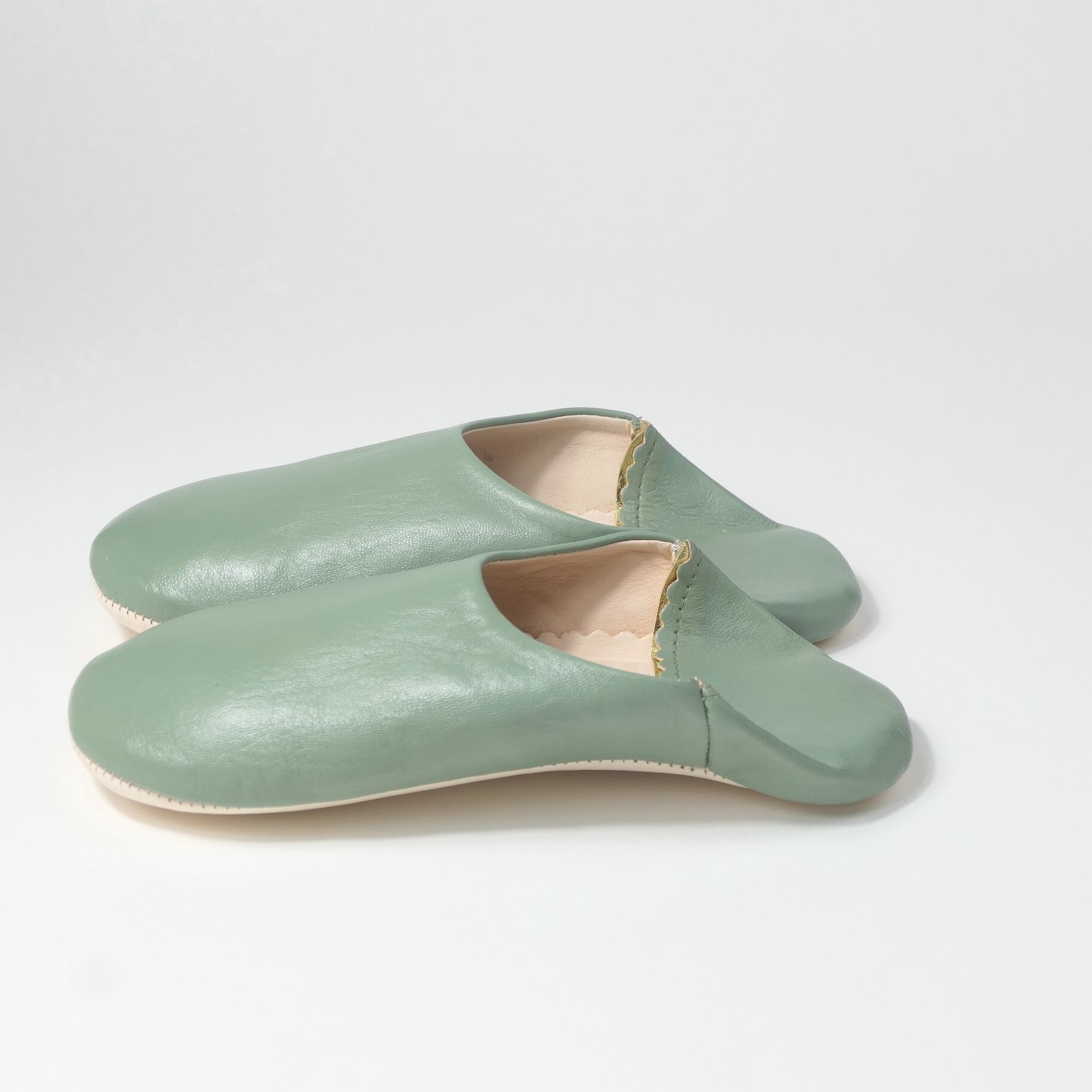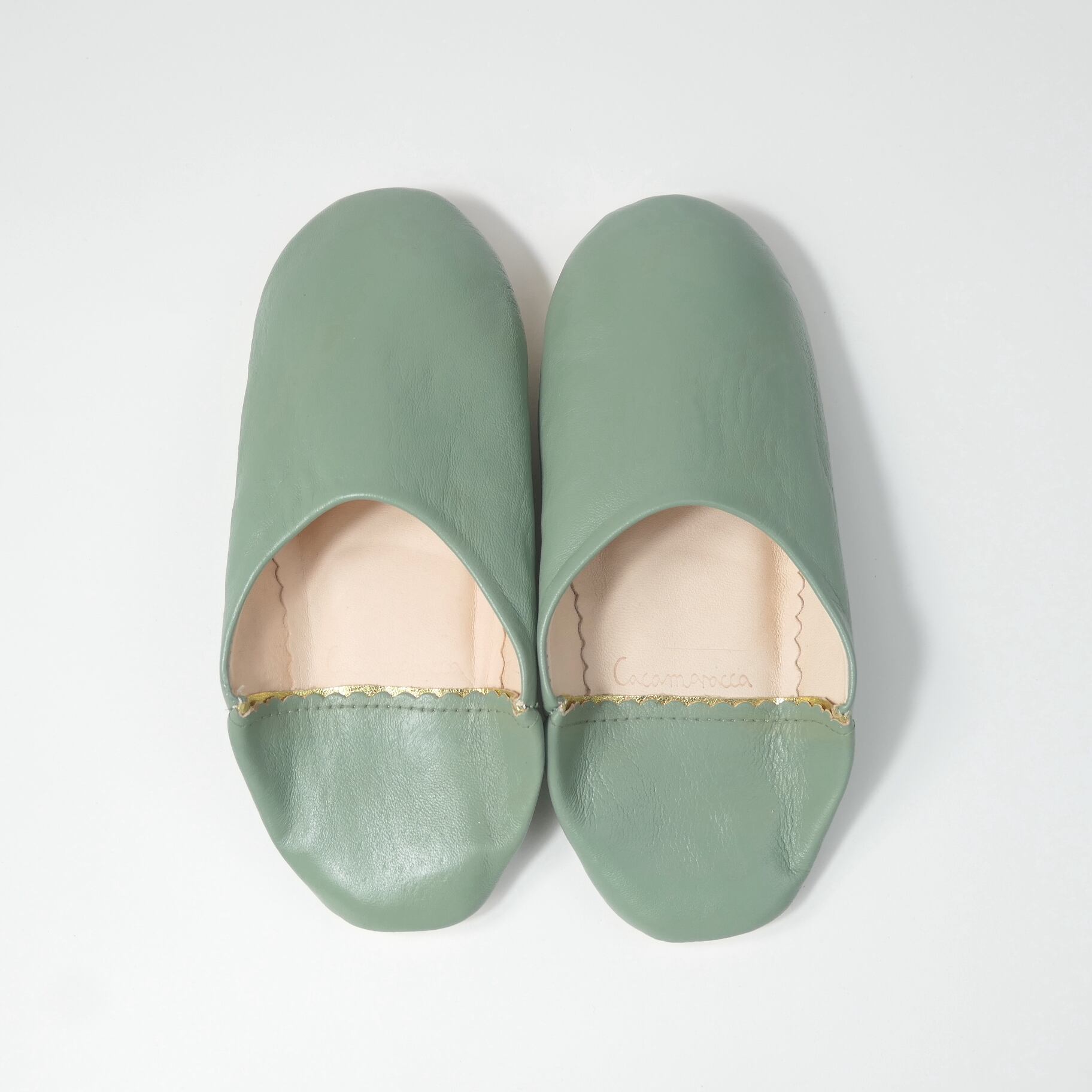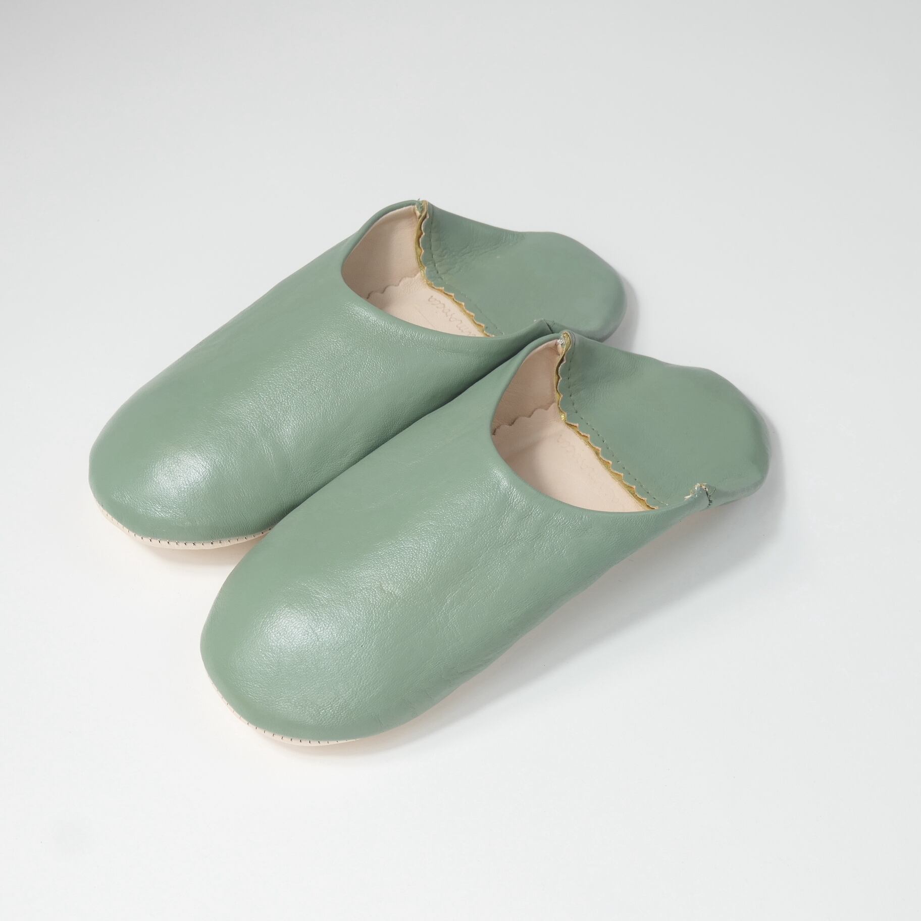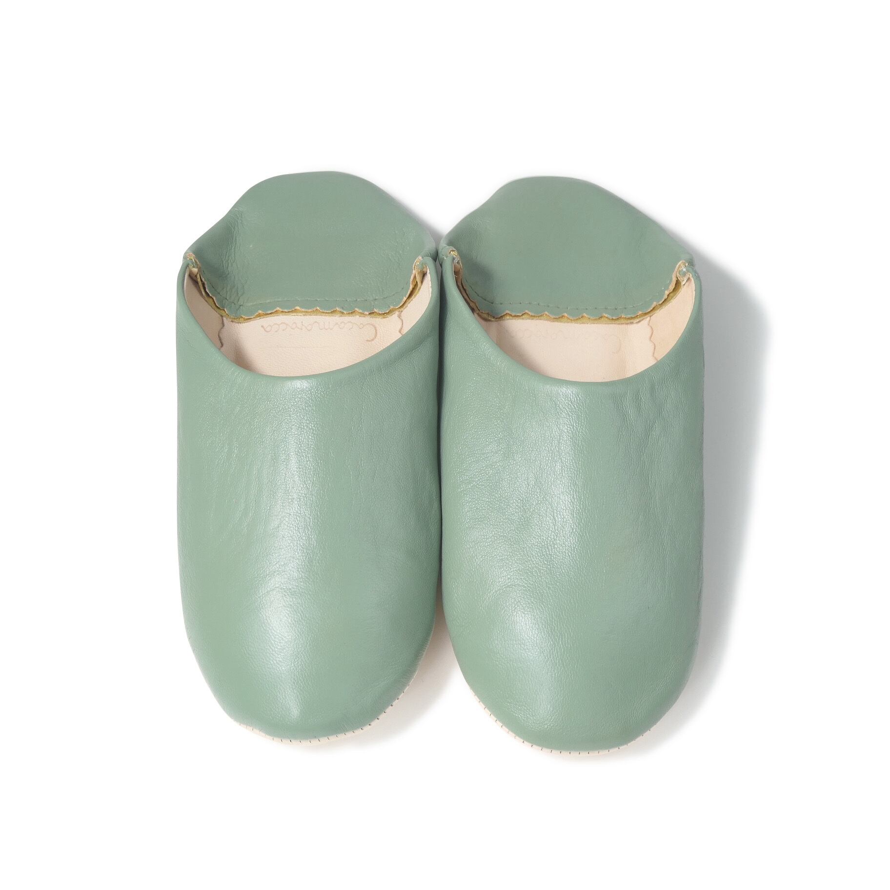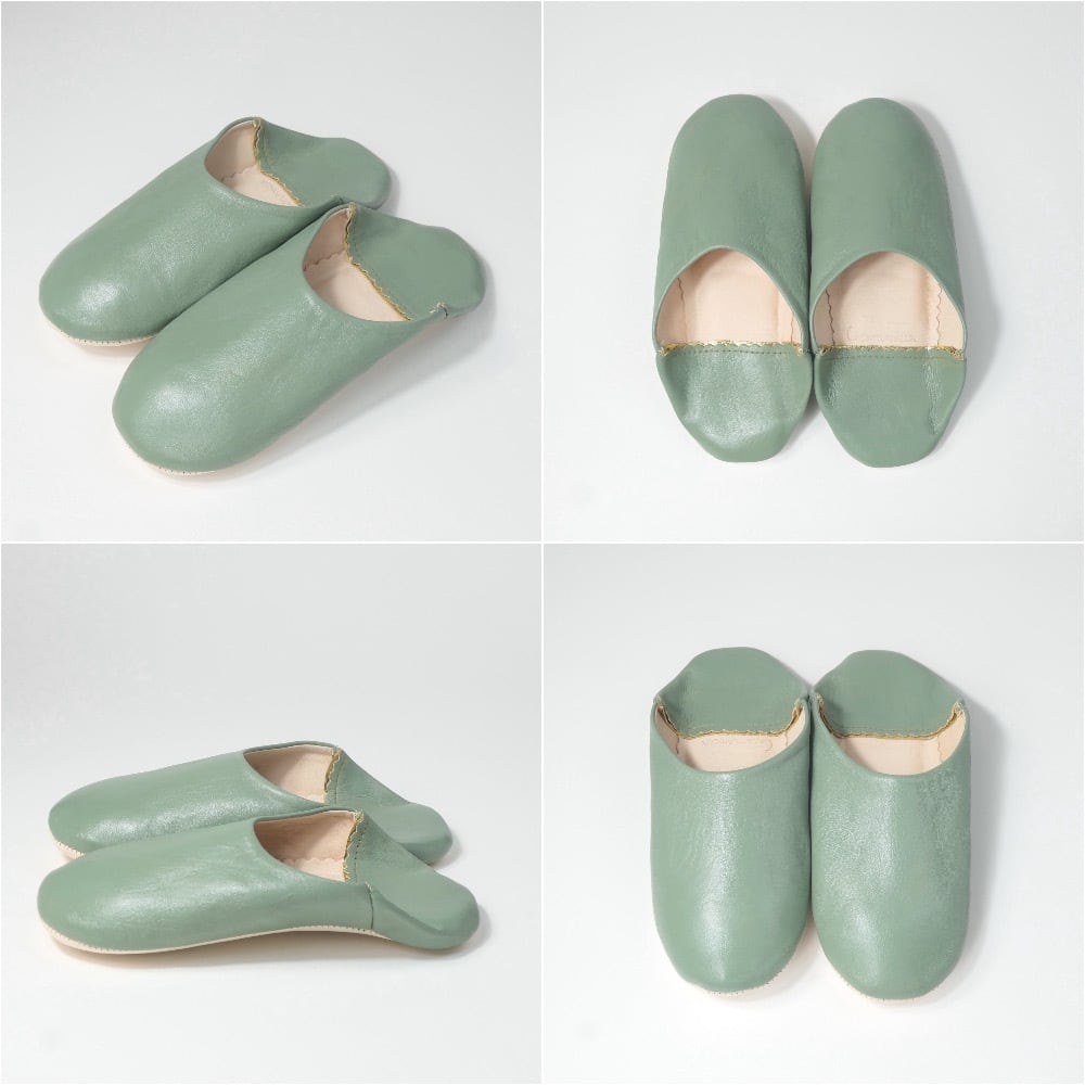 受注生産 オリーブ(プレーン)レザー バブーシュ スリッパ