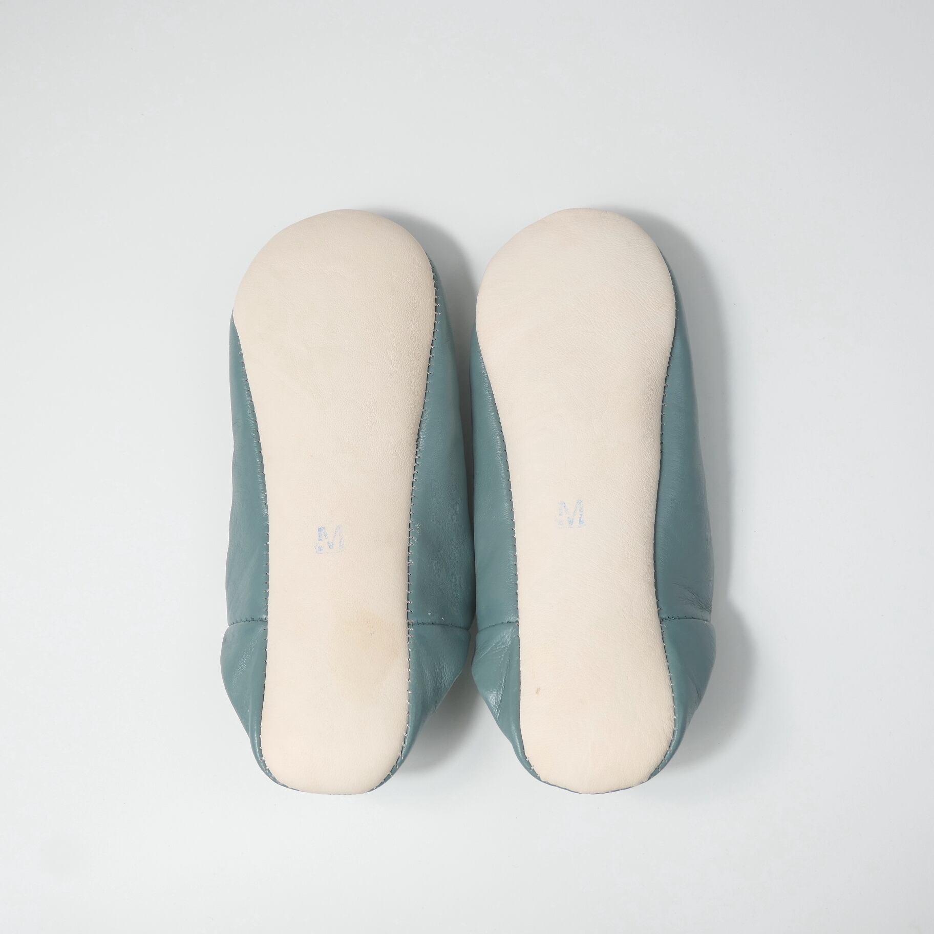 受注生産 アクアグリーン(プレーン)レザー バブーシュ スリッパ