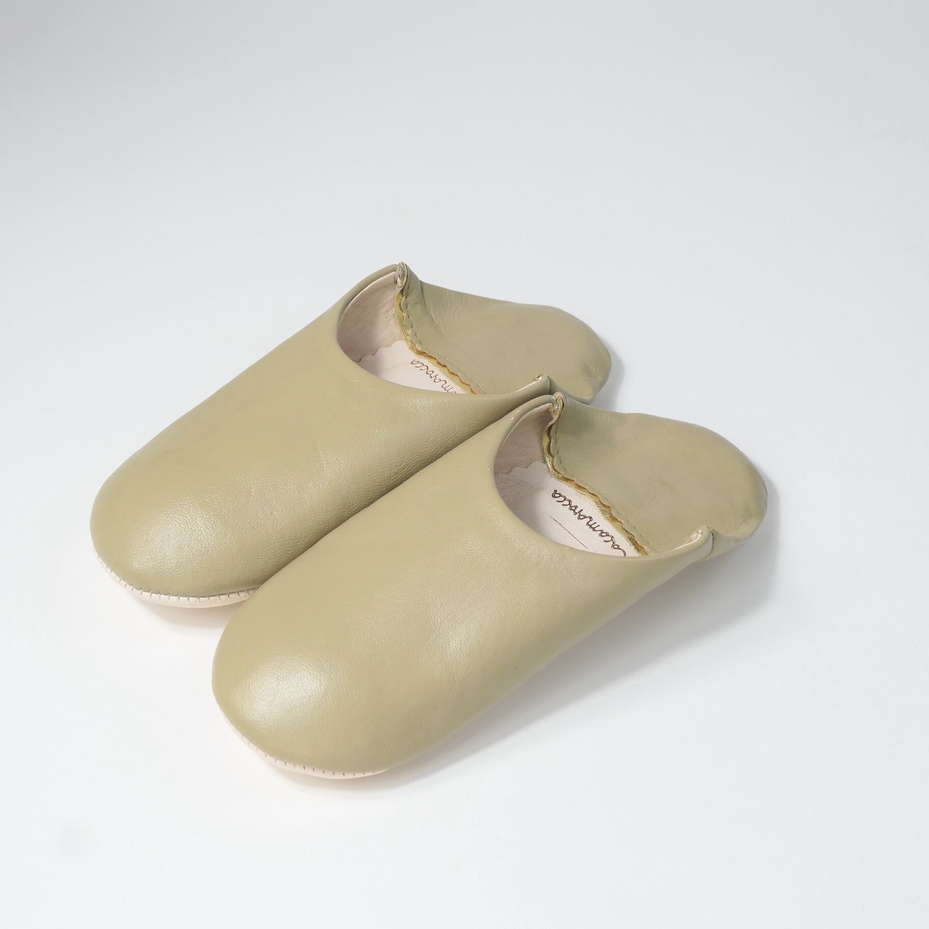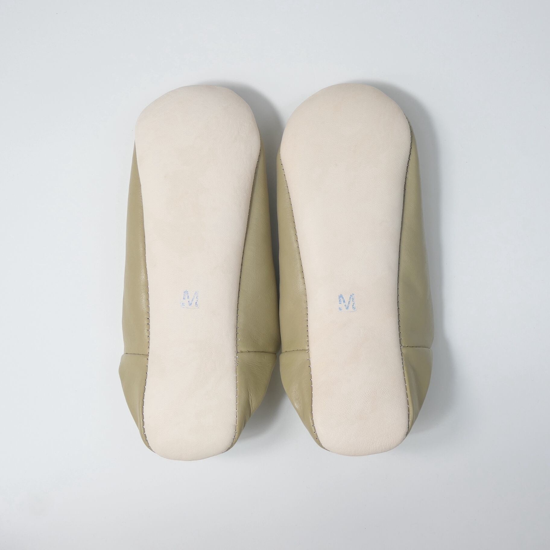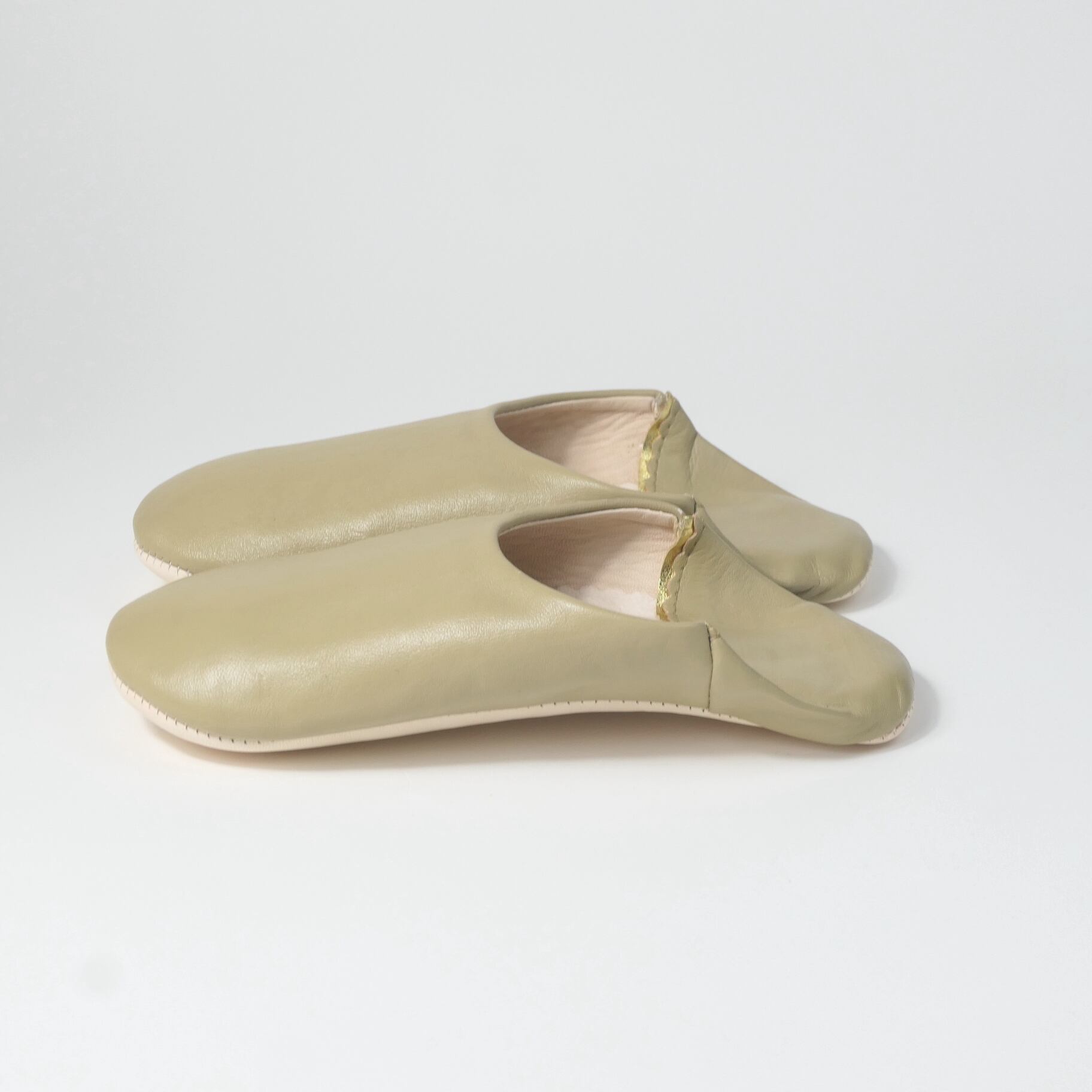 受注生産 ベージュ(プレーン)レザー バブーシュ スリッパ