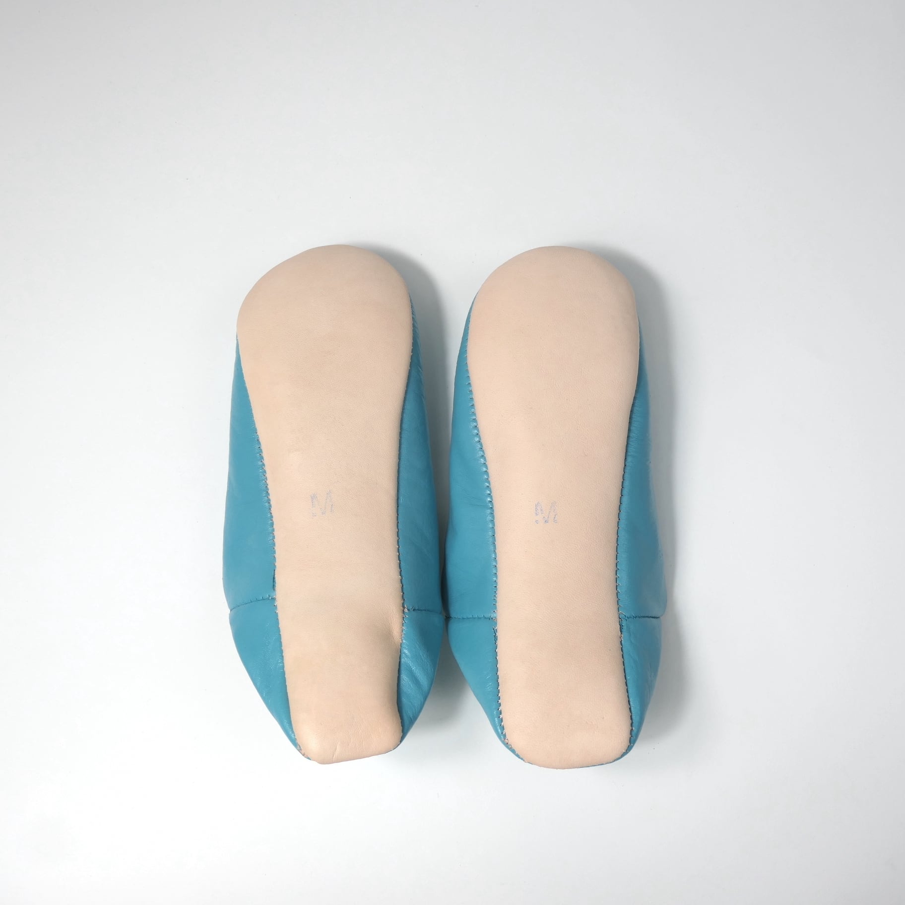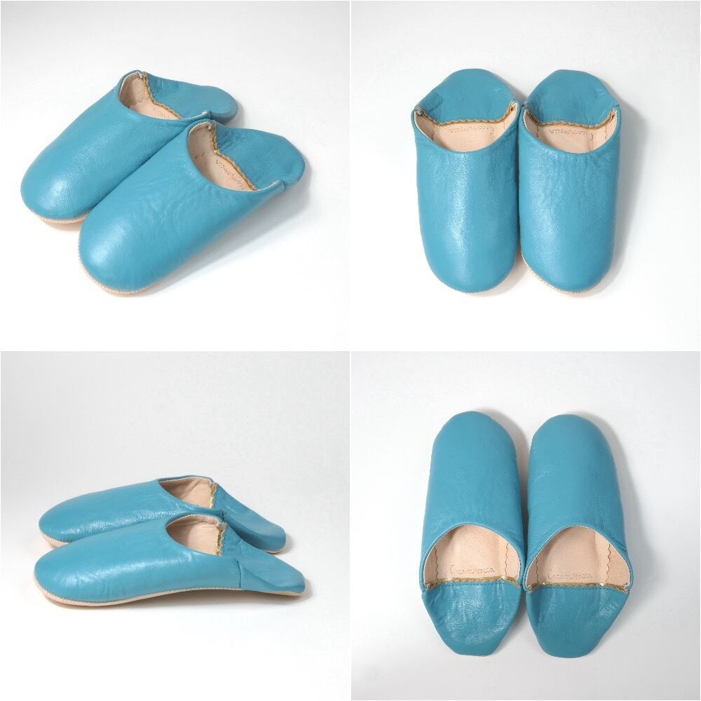 受注生産 ブルー(プレーン)レザー バブーシュ スリッパ