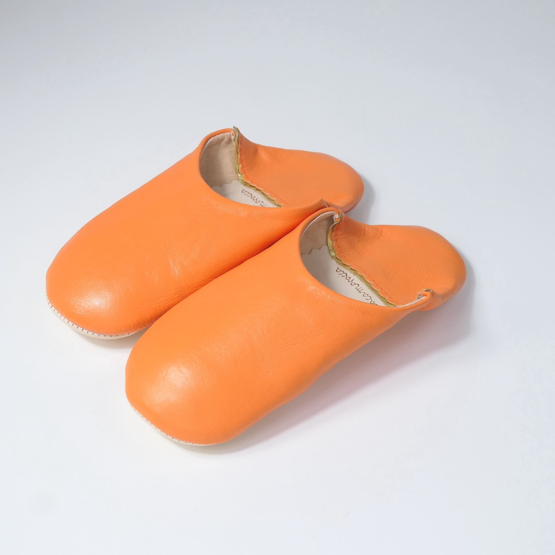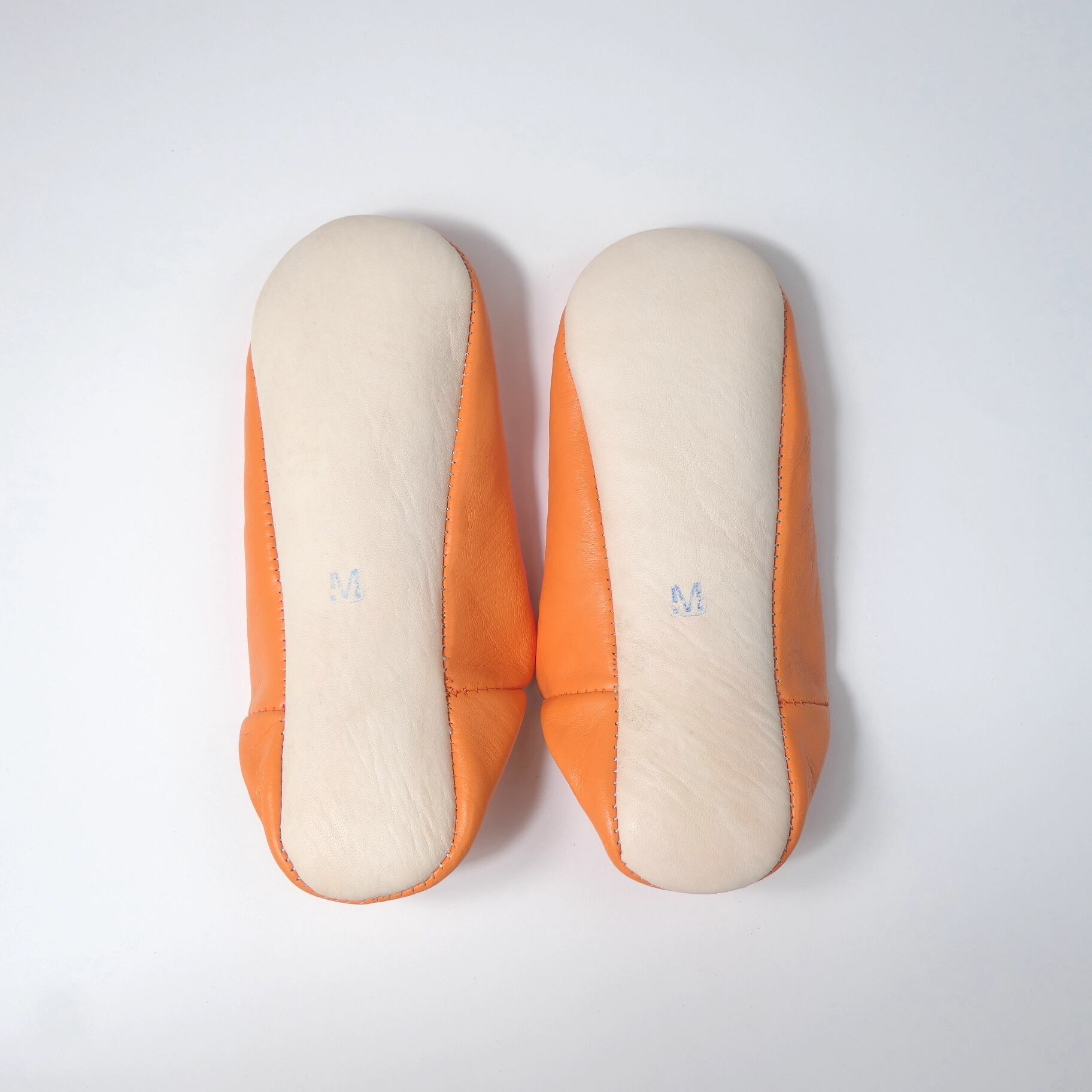 受注生産 オレンジ(プレーン)レザー バブーシュ スリッパ