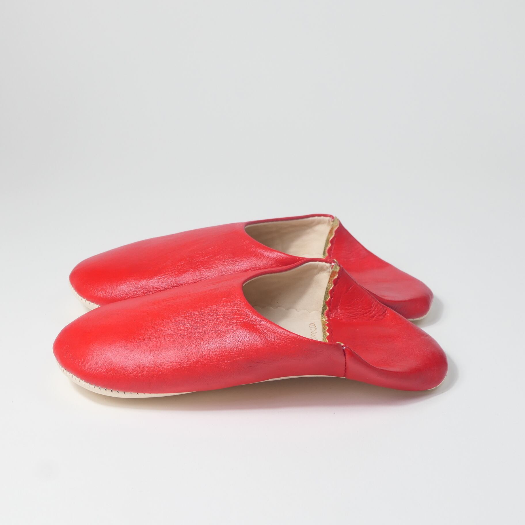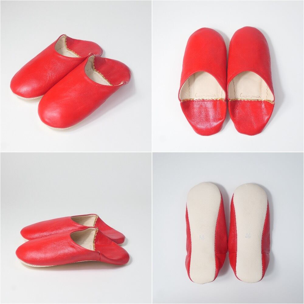 受注生産 レッド(プレーン)レザー バブーシュ スリッパ