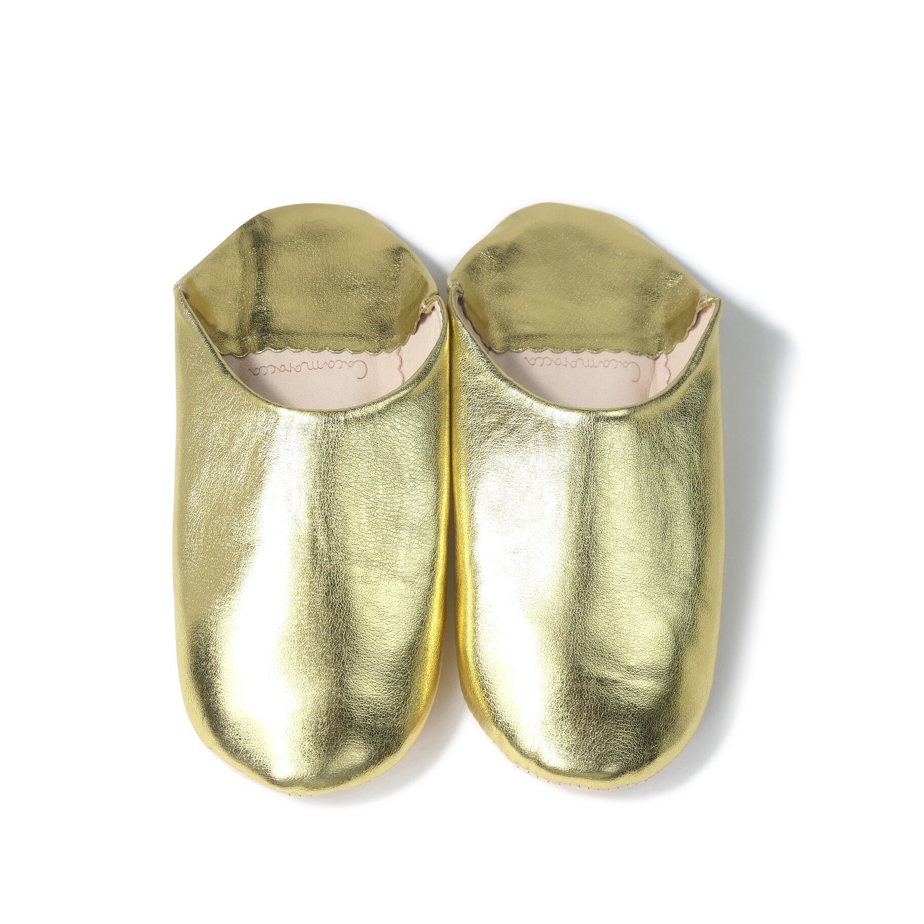 受注生産 ゴールド(プレーン)レザー バブーシュ スリッパ
