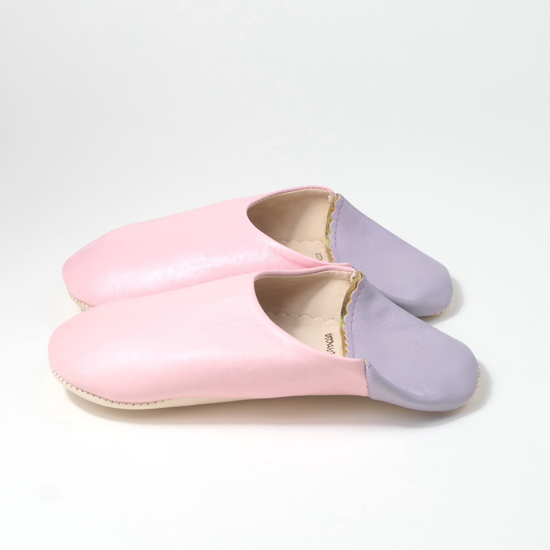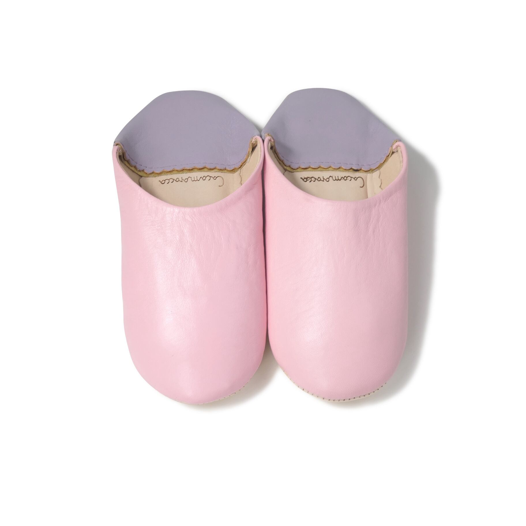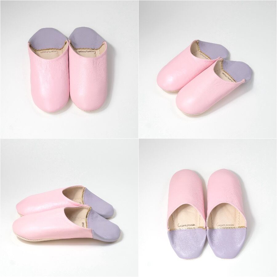 受注生産 ピンク×パープル(プレーン)レザー バブーシュ スリッパ