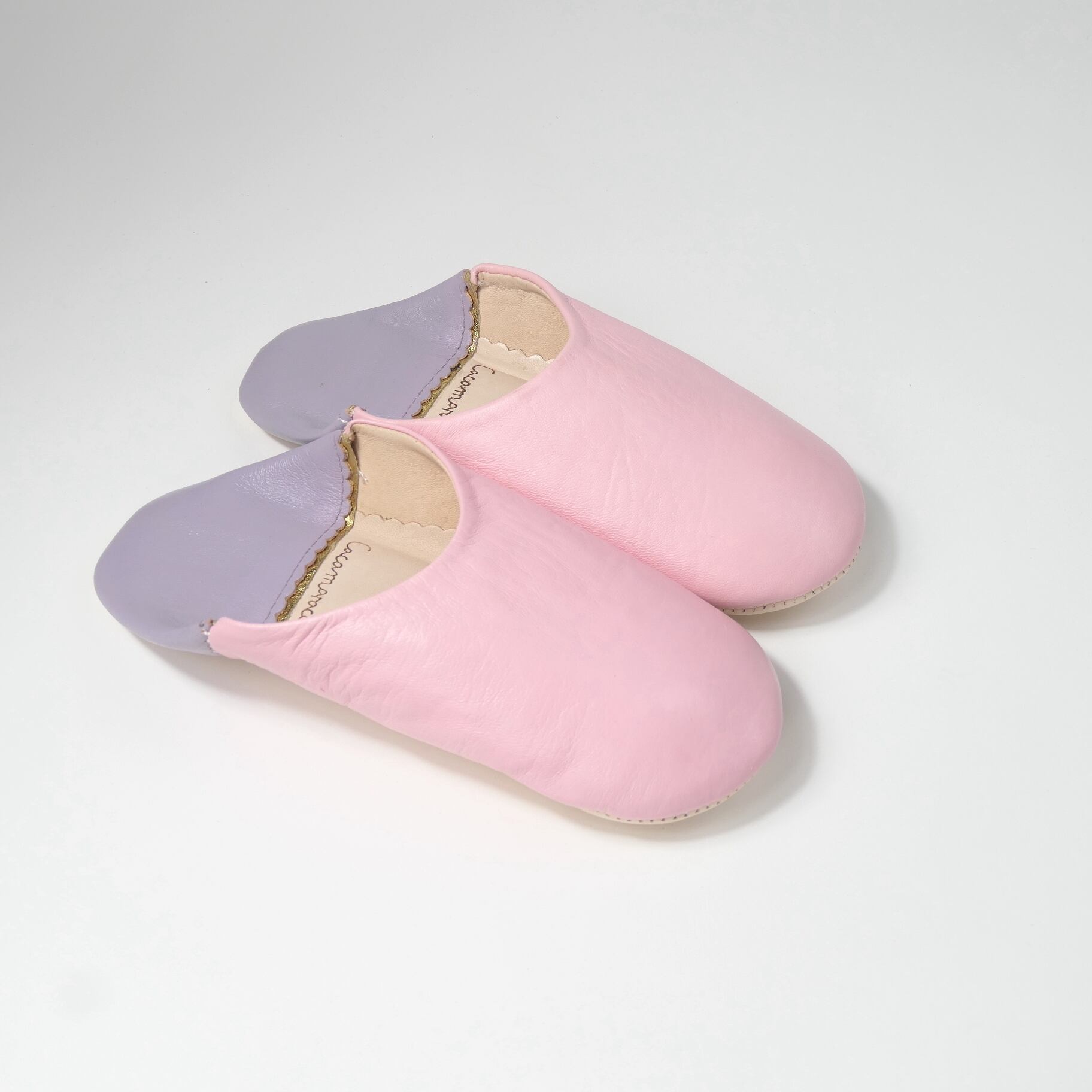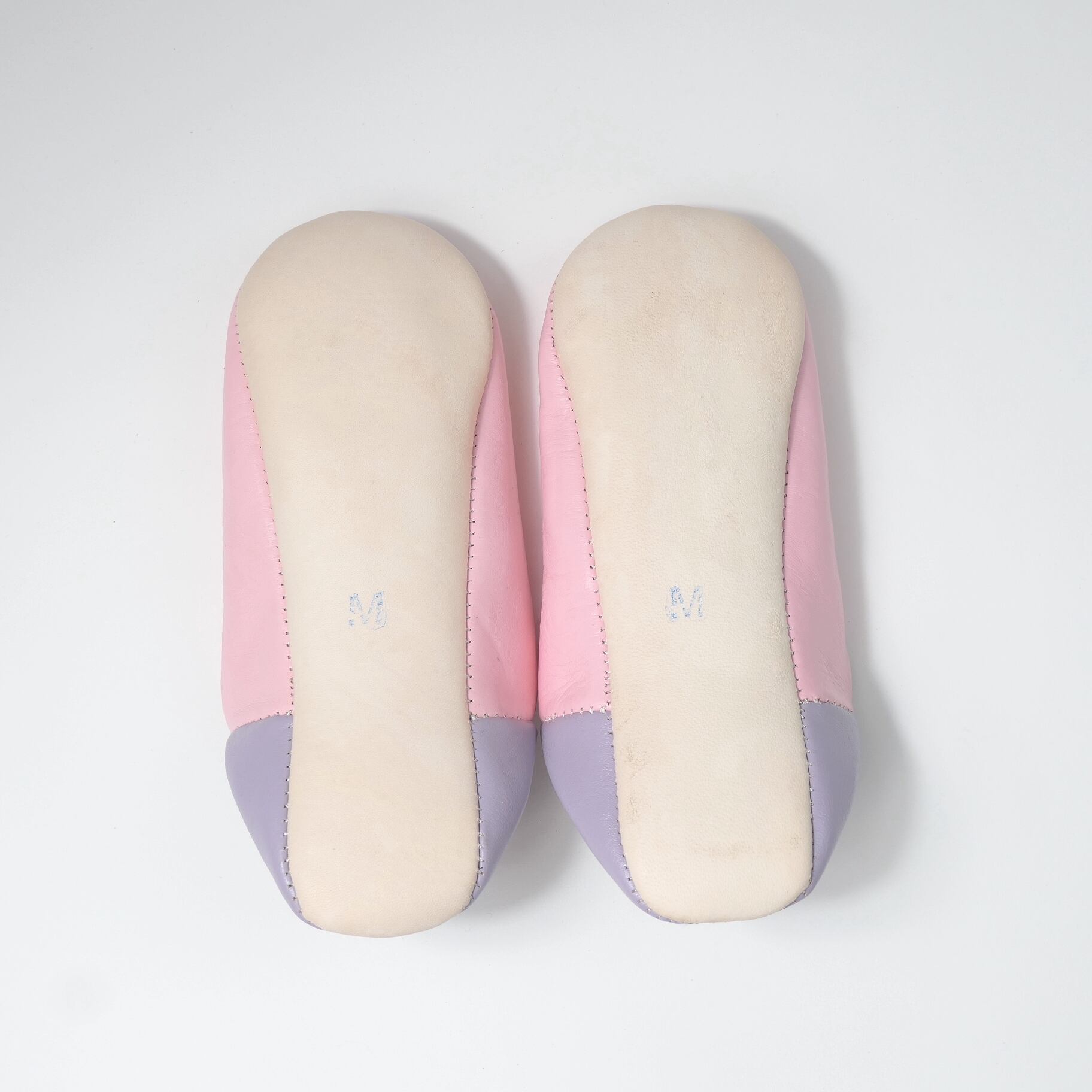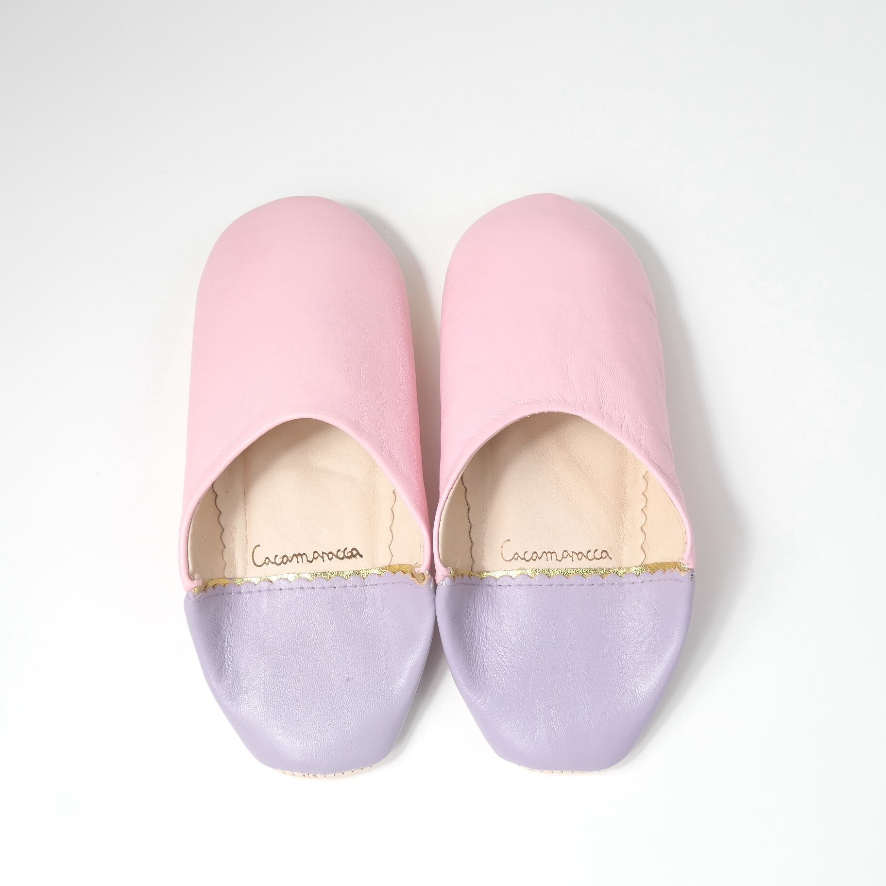 受注生産 ピンク×パープル(プレーン)レザー バブーシュ スリッパ