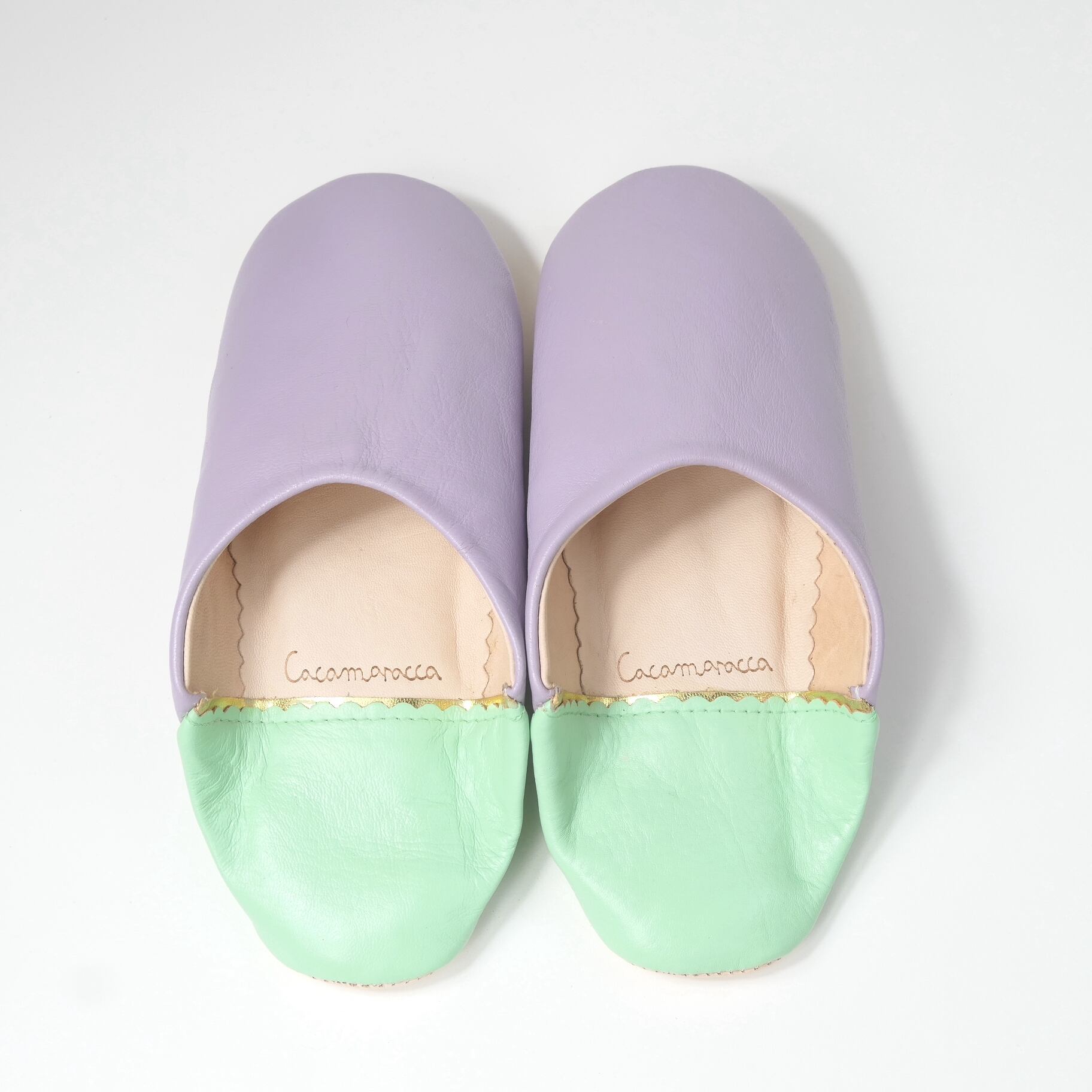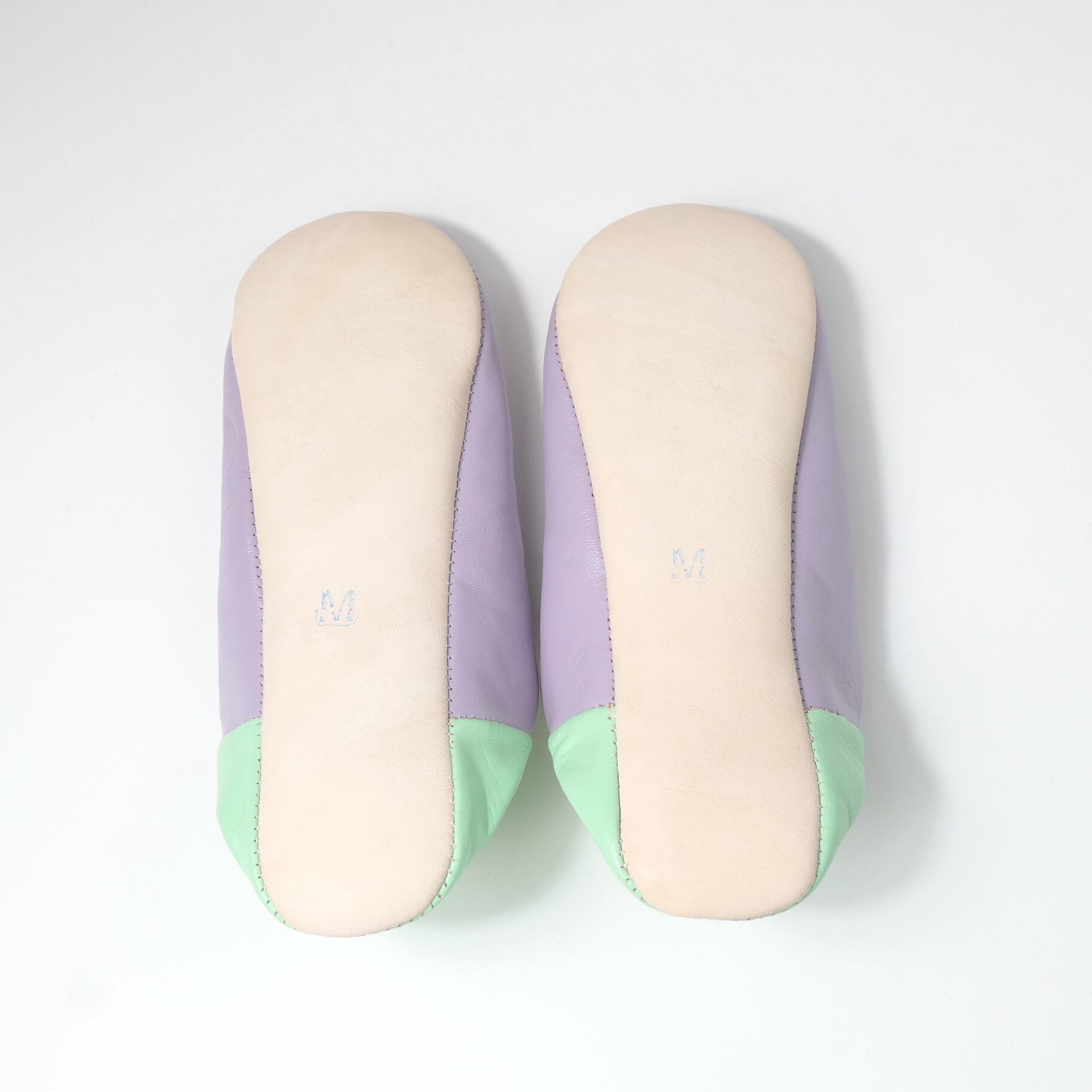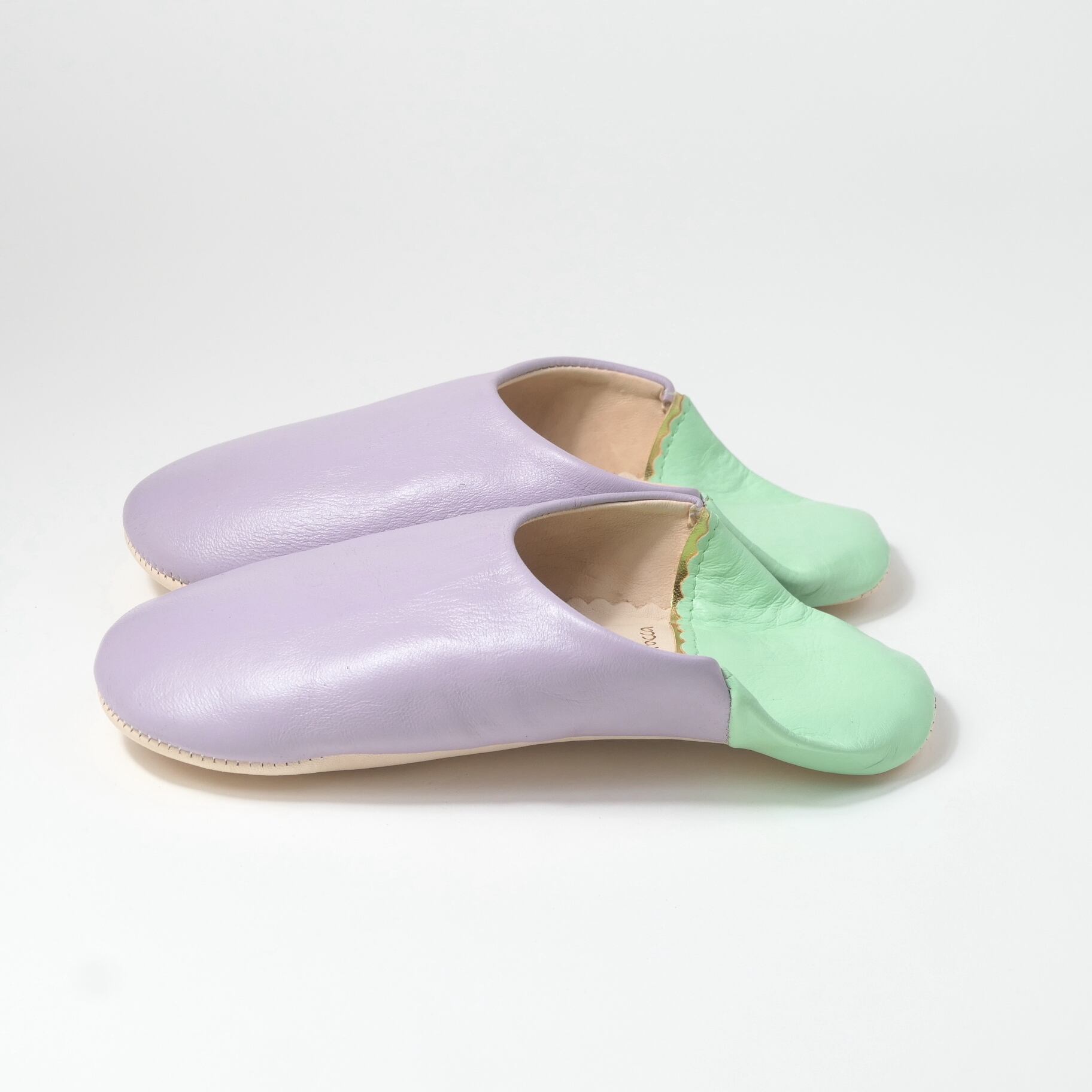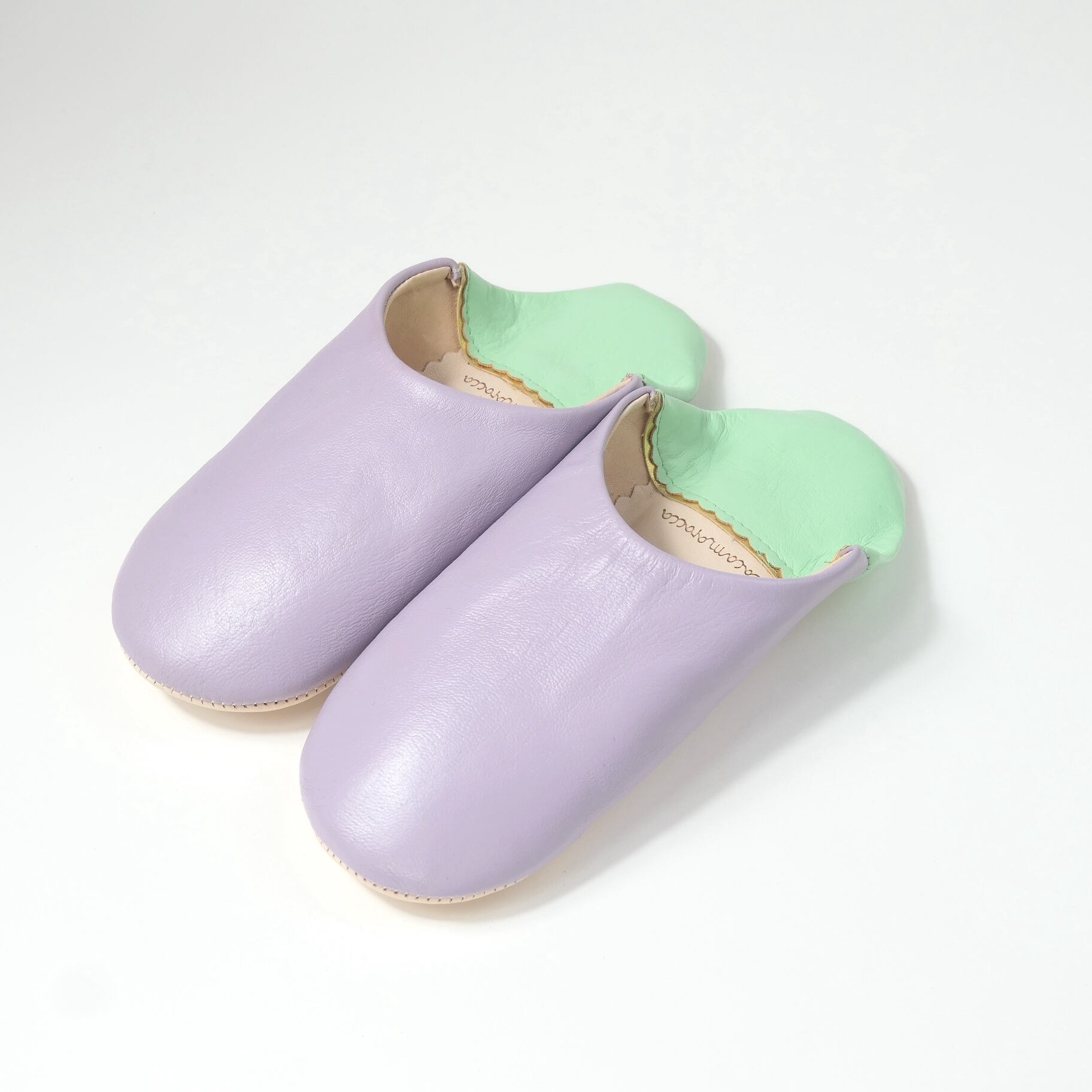 受注生産 パープル×スカイエメラルド(プレーン)レザー バブーシュ スリッパ
