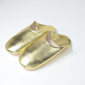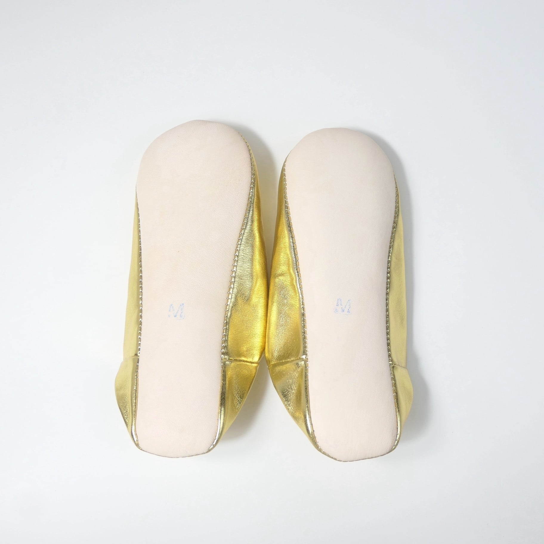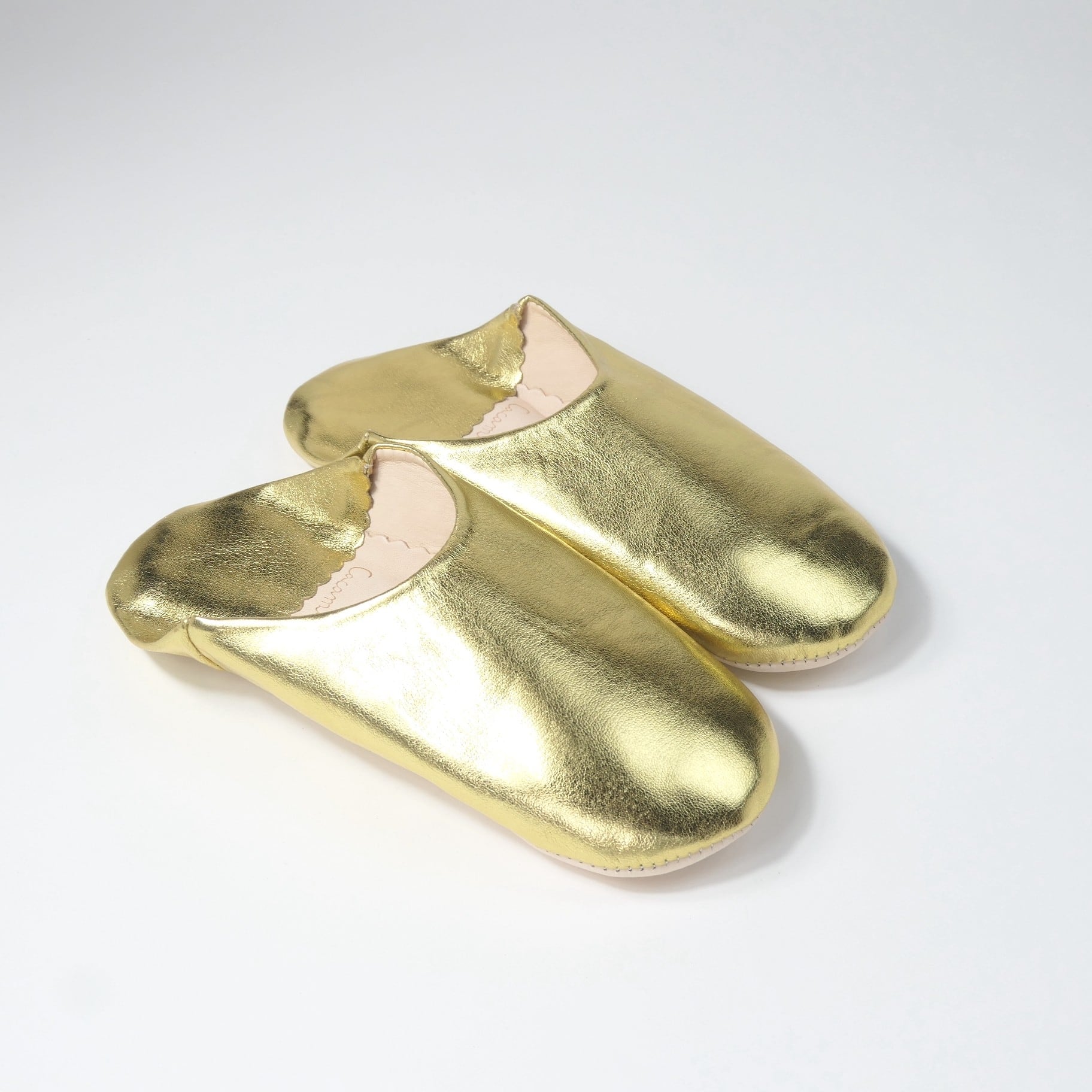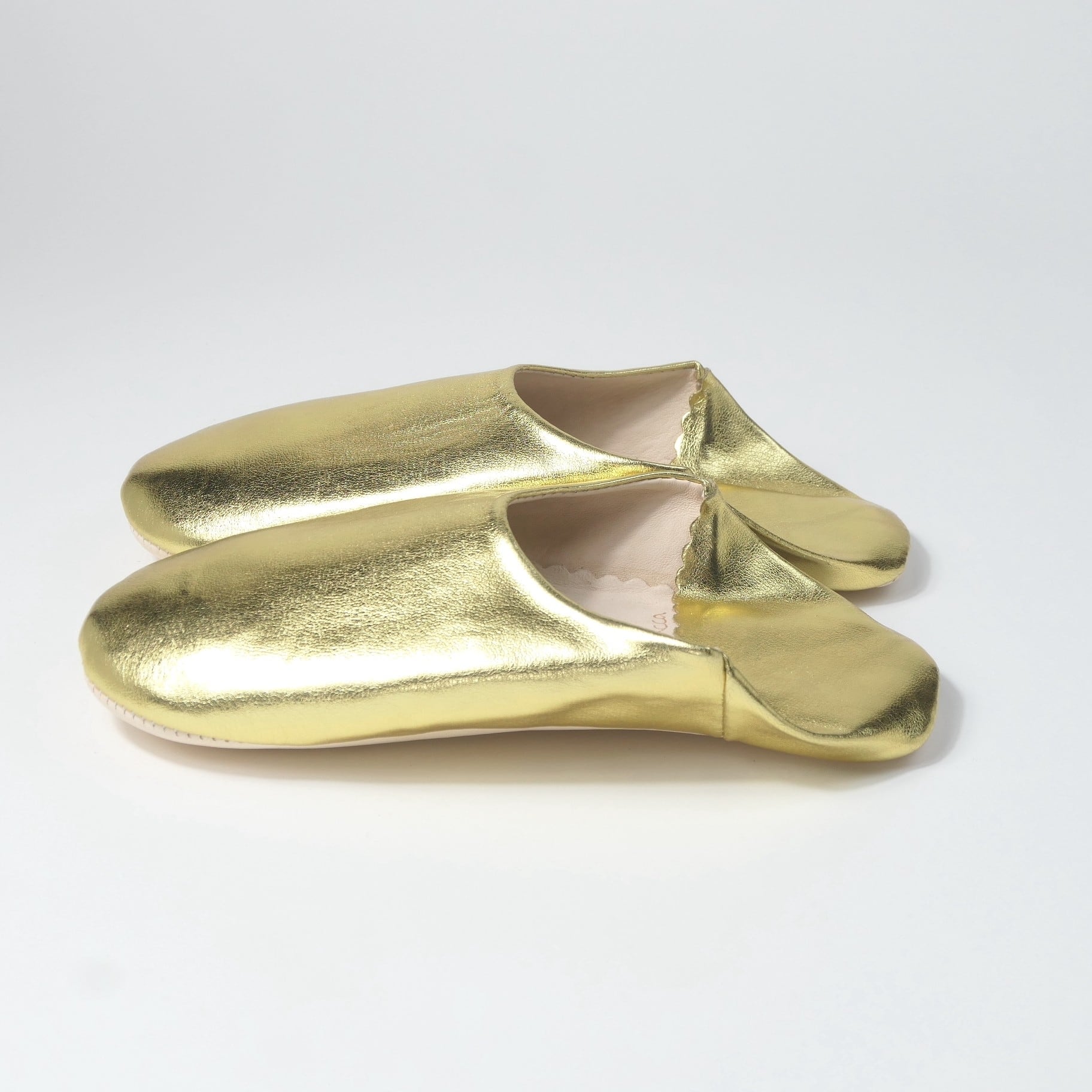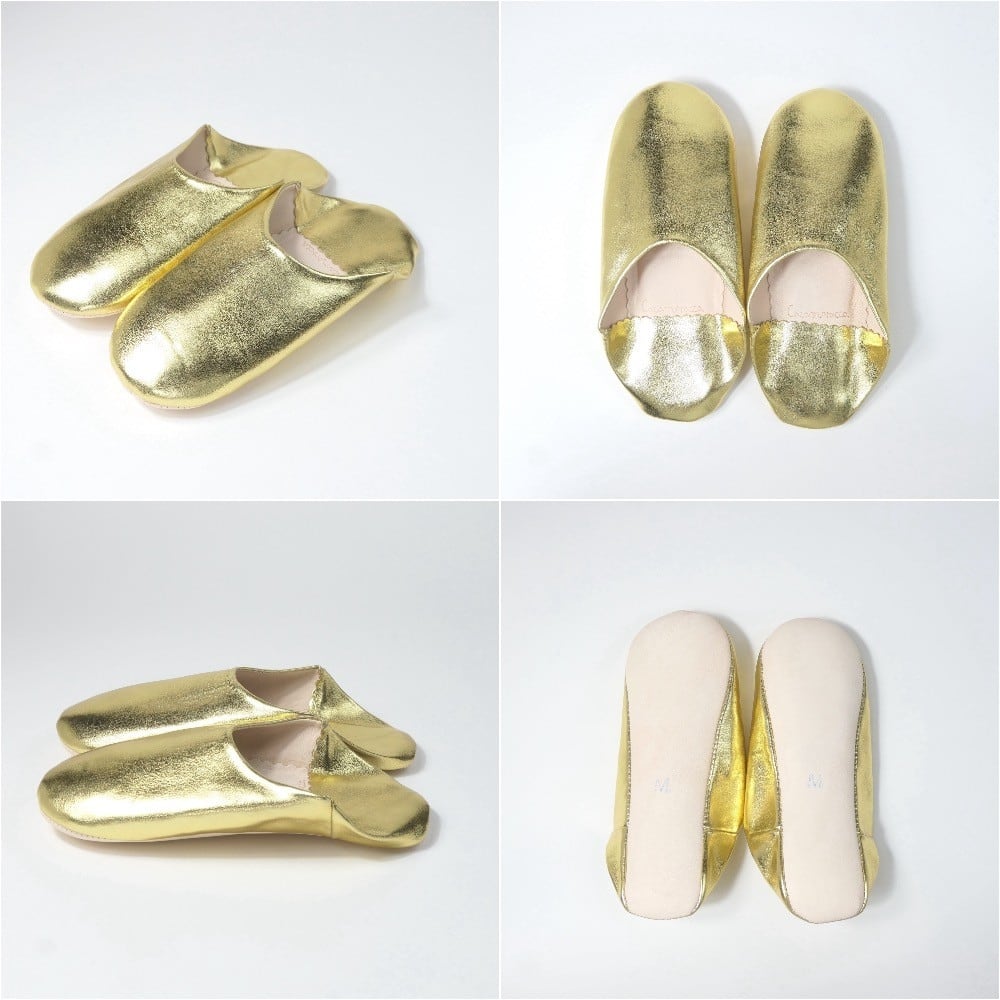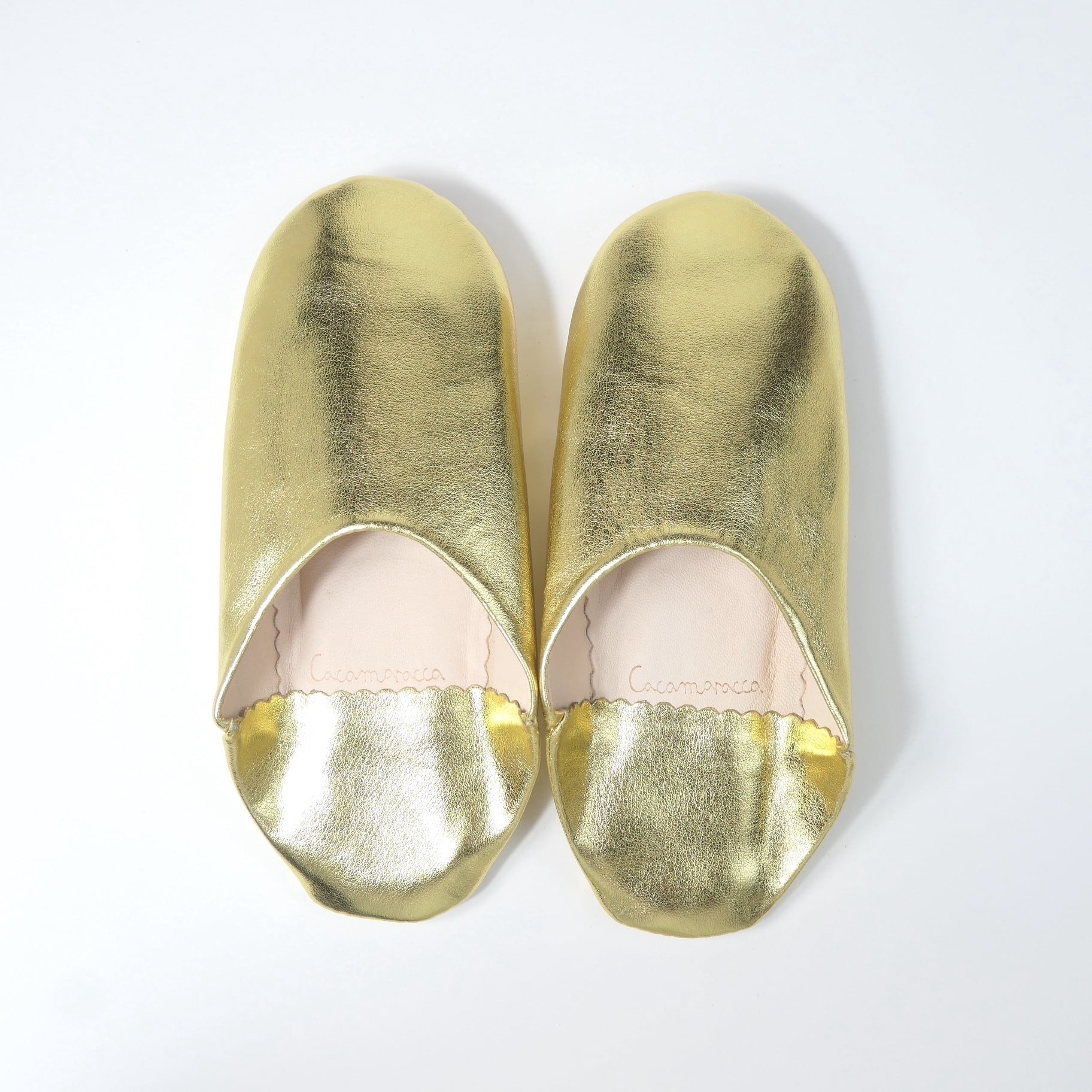 ゴールド(プレーン)レザー バブーシュ スリッパ