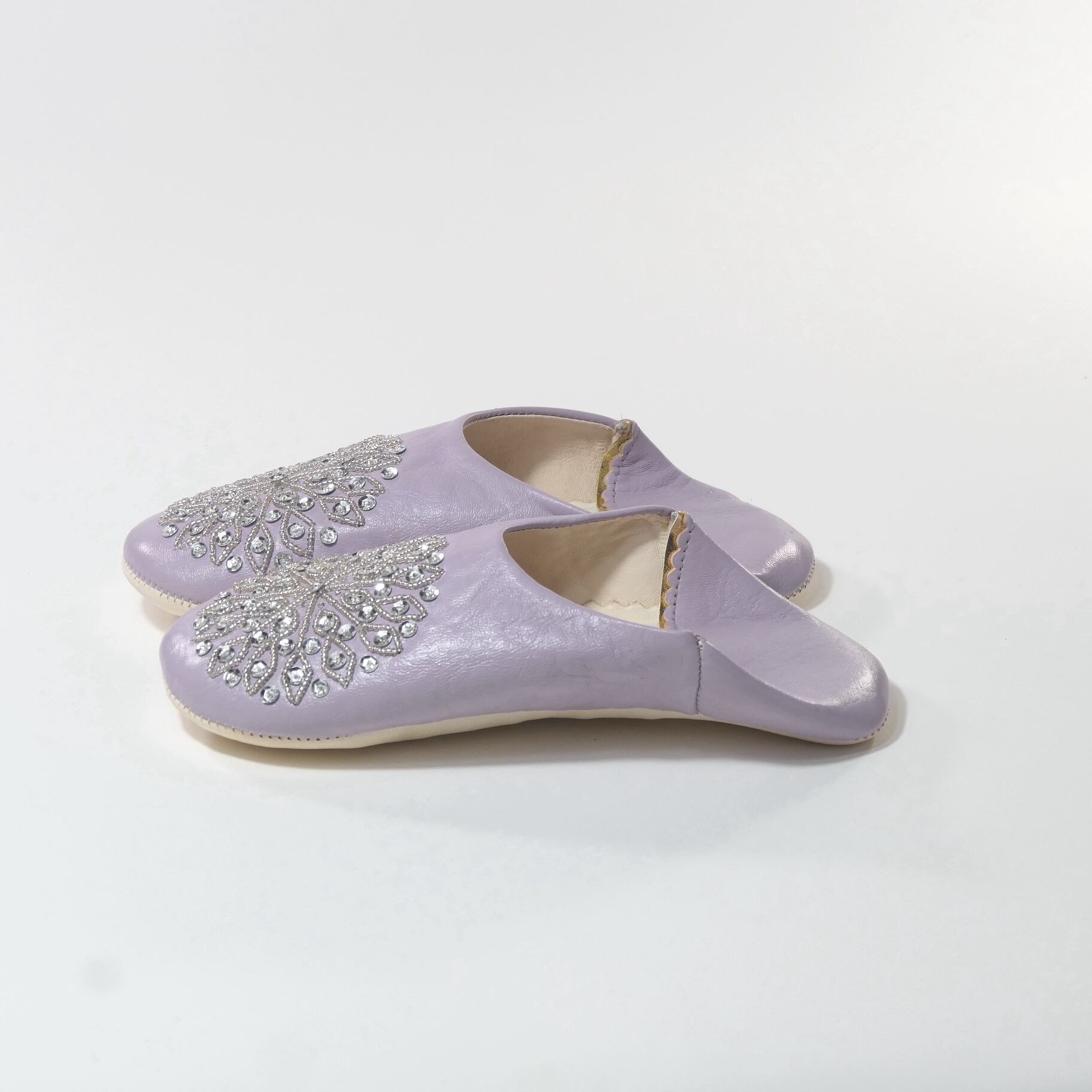 パープル(シルバースパンコール) レザー バブーシュ スリッパ