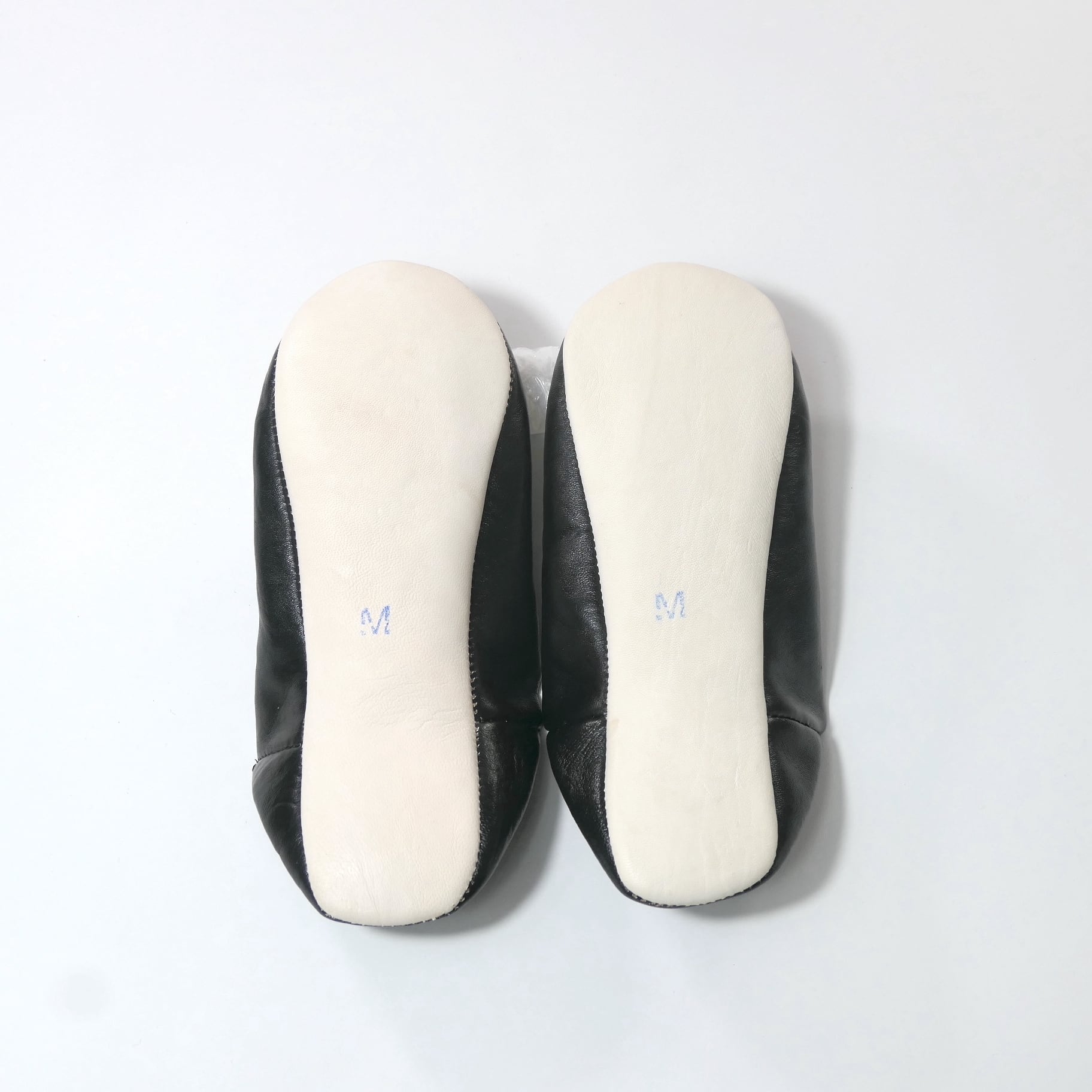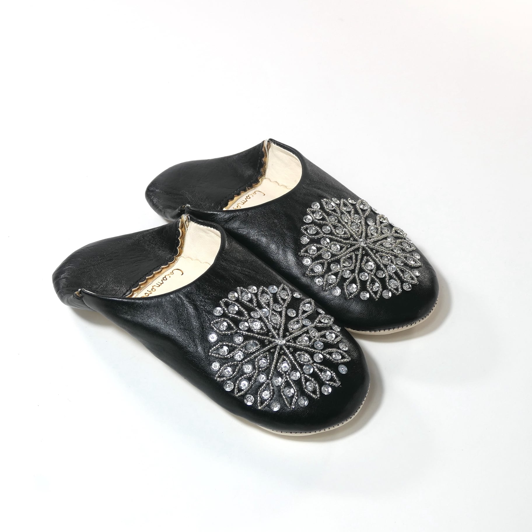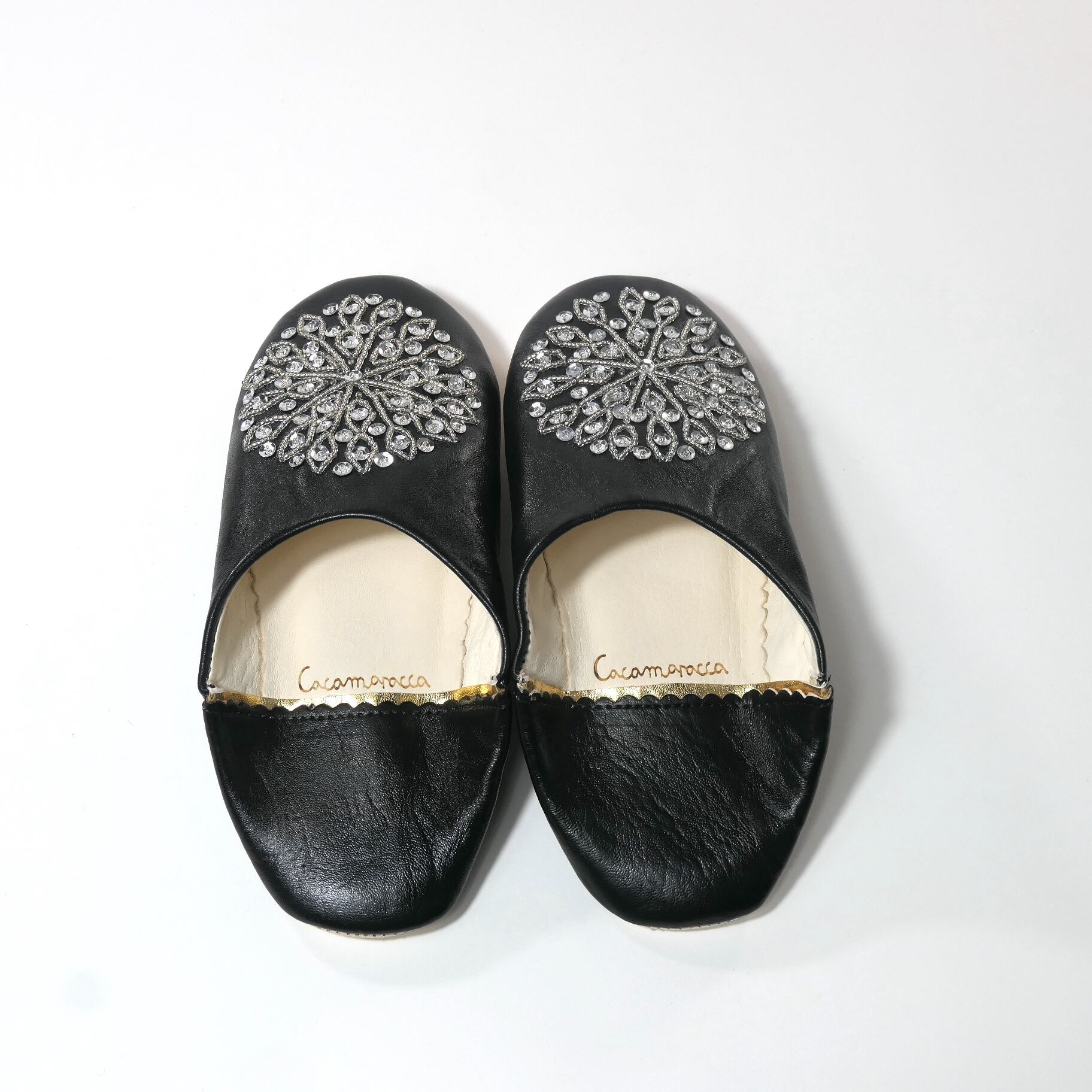 ブラック(シルバースパンコール)レザー バブーシュ スリッパ