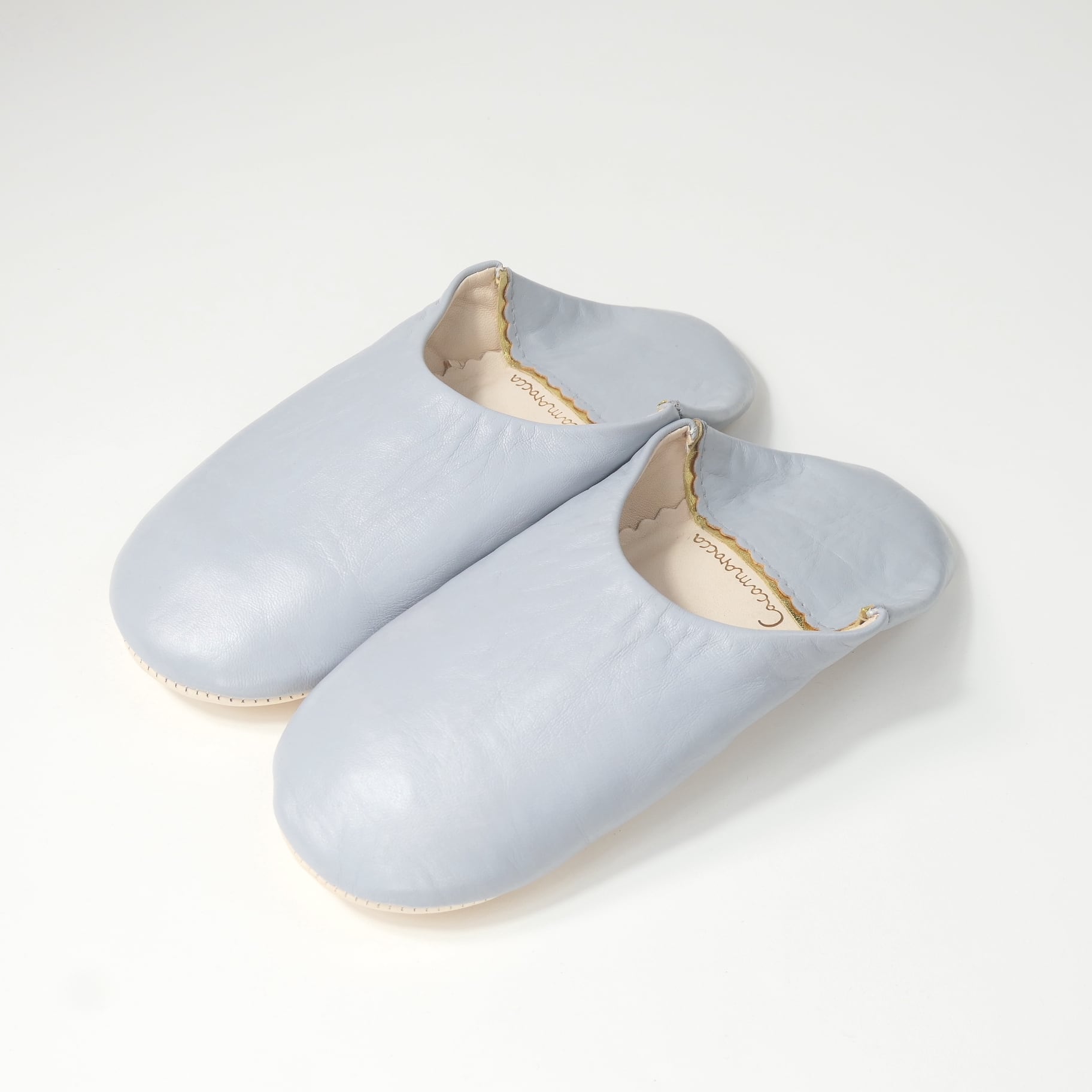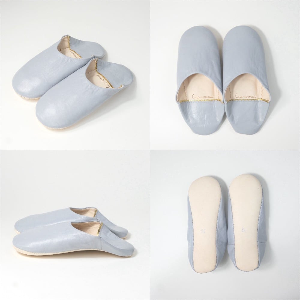 ソフトグレー(プレーン)レザー バブーシュ スリッパ