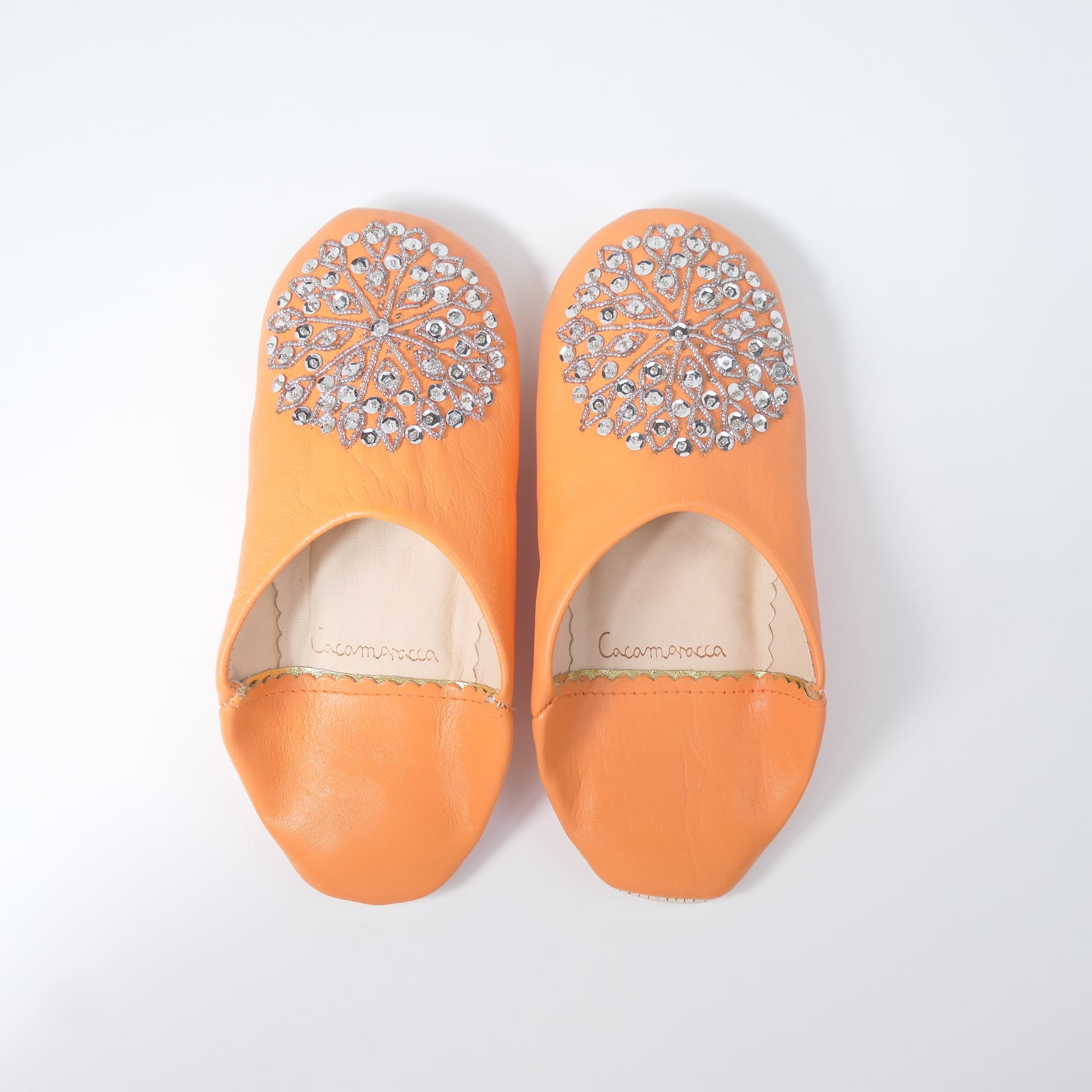 オレンジ(シルバースパンコール)レザー バブーシュ スリッパ