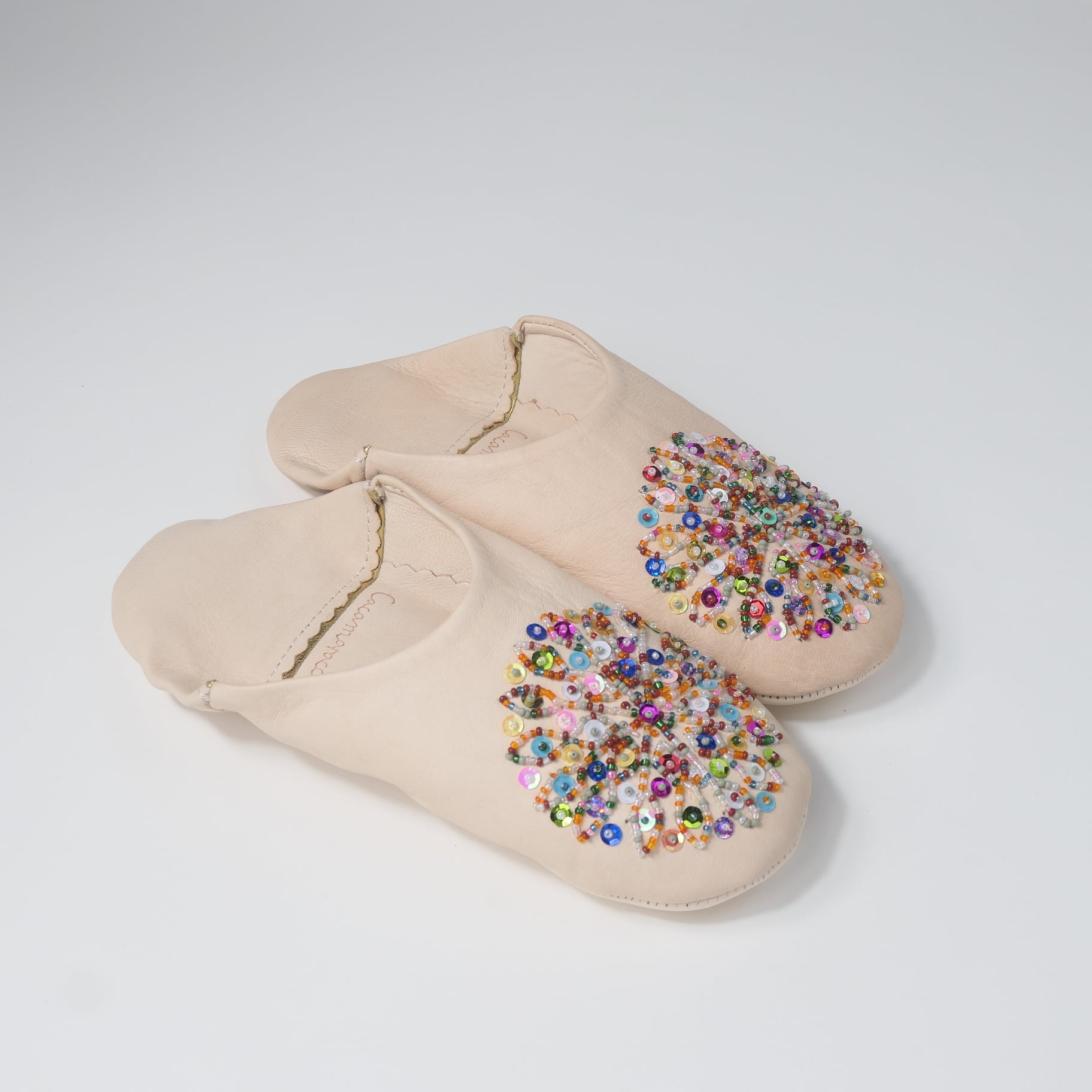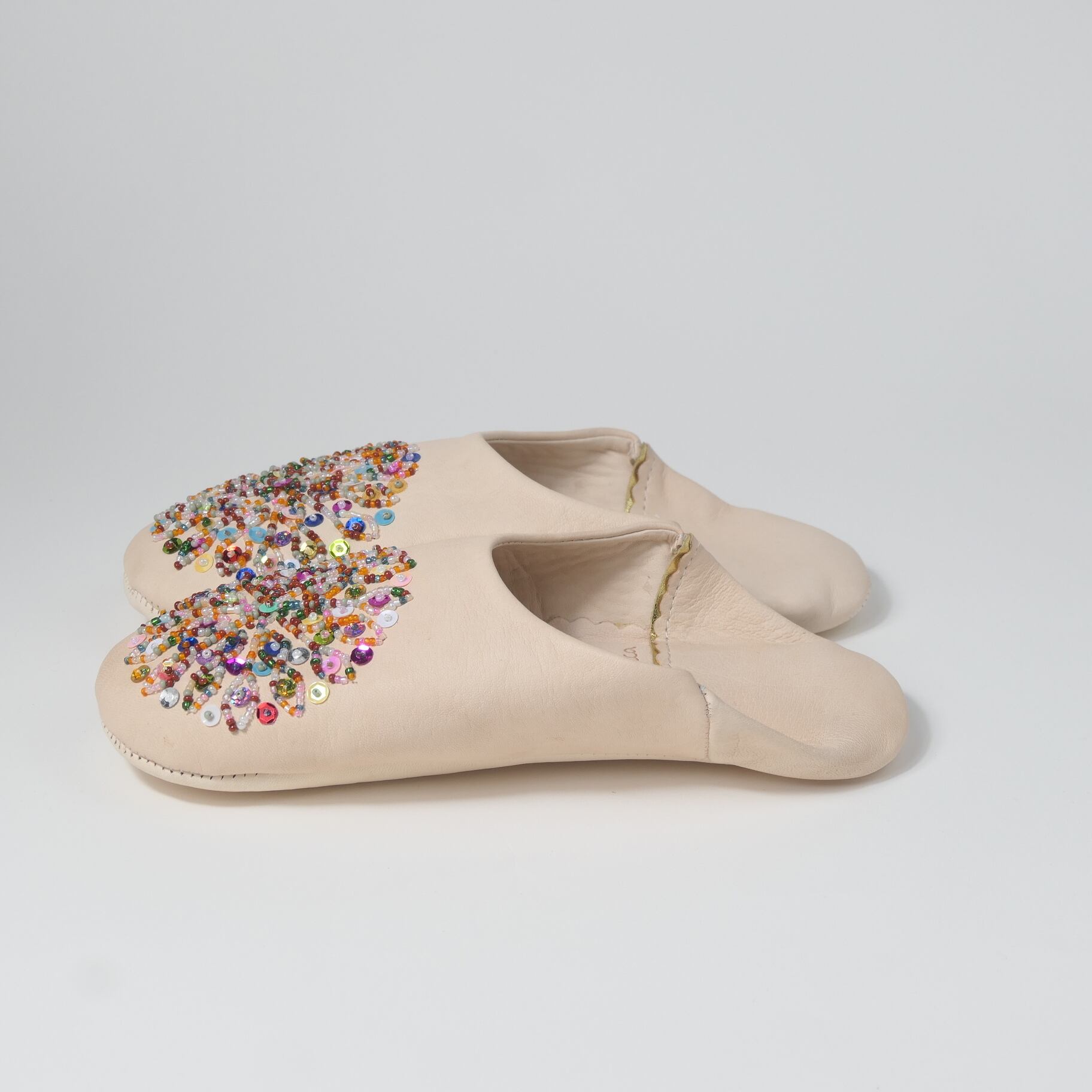 受注生産 ナチュラル(ミックス スパンコール)レザー バブーシュ スリッパ