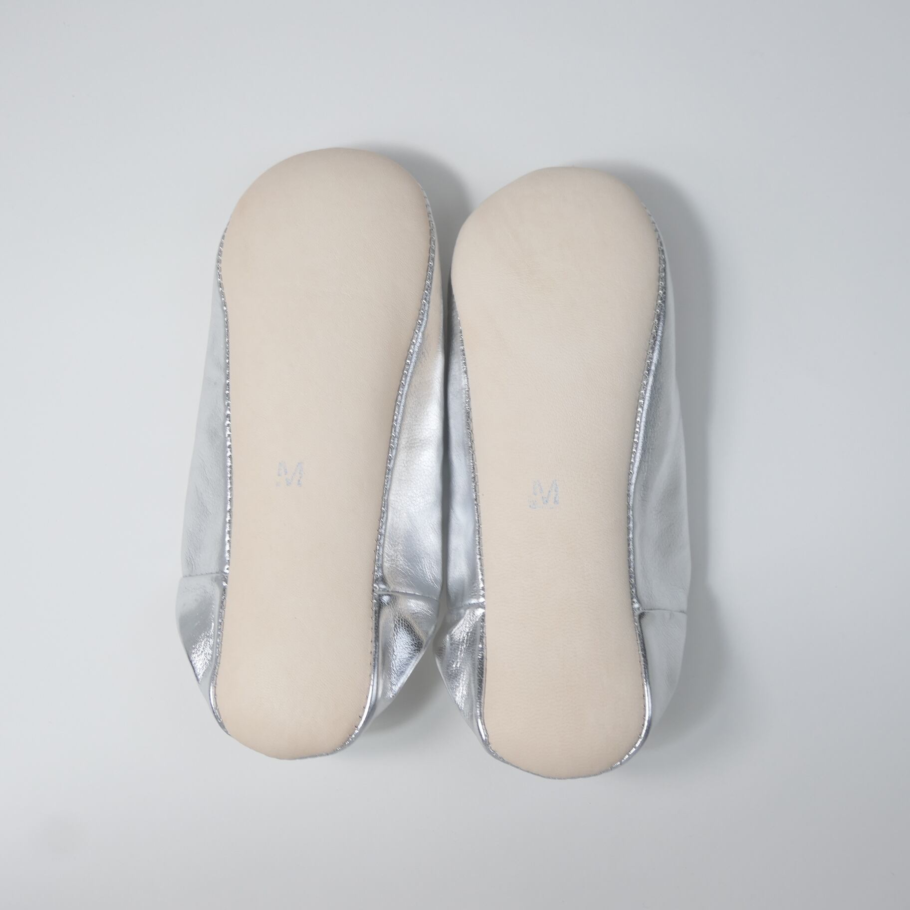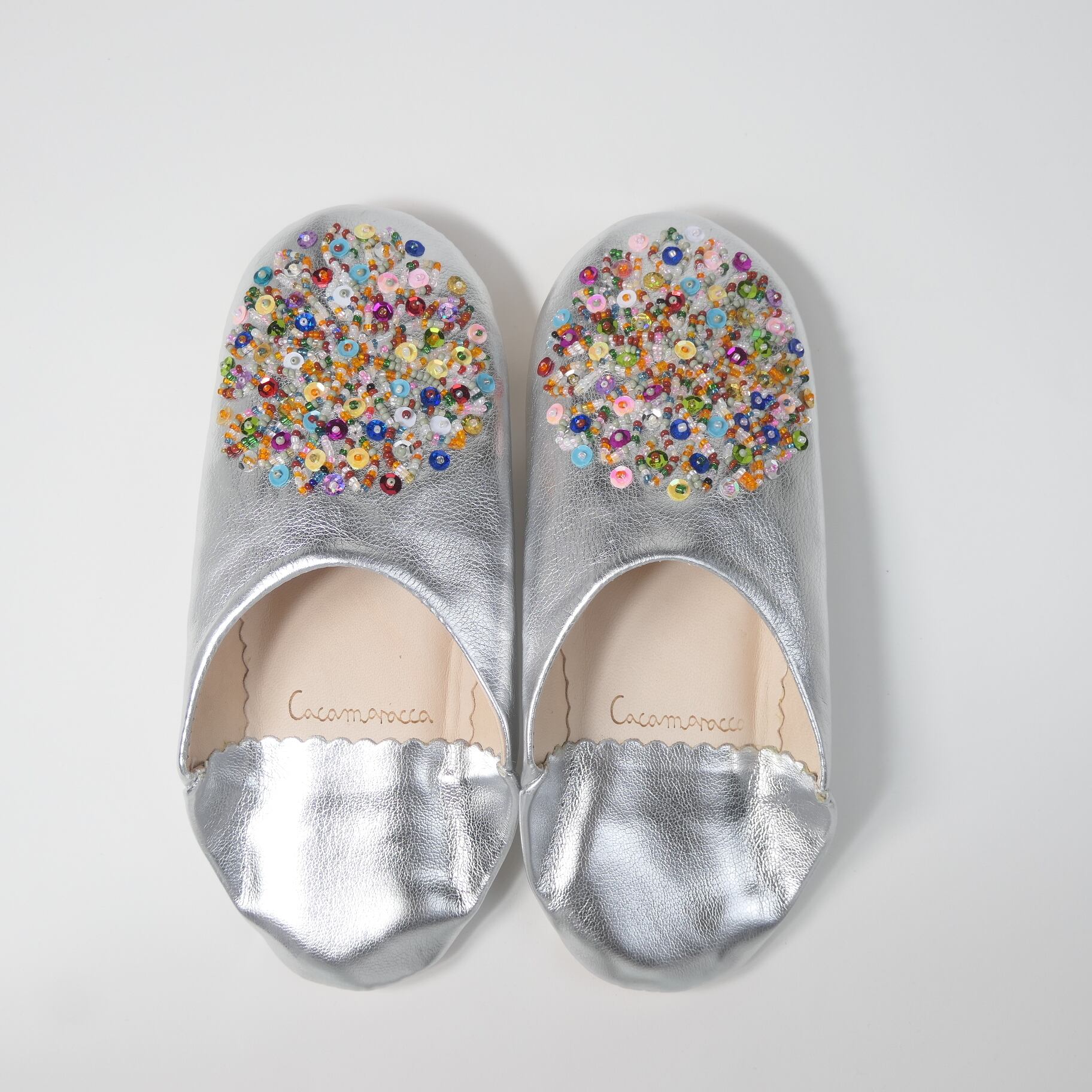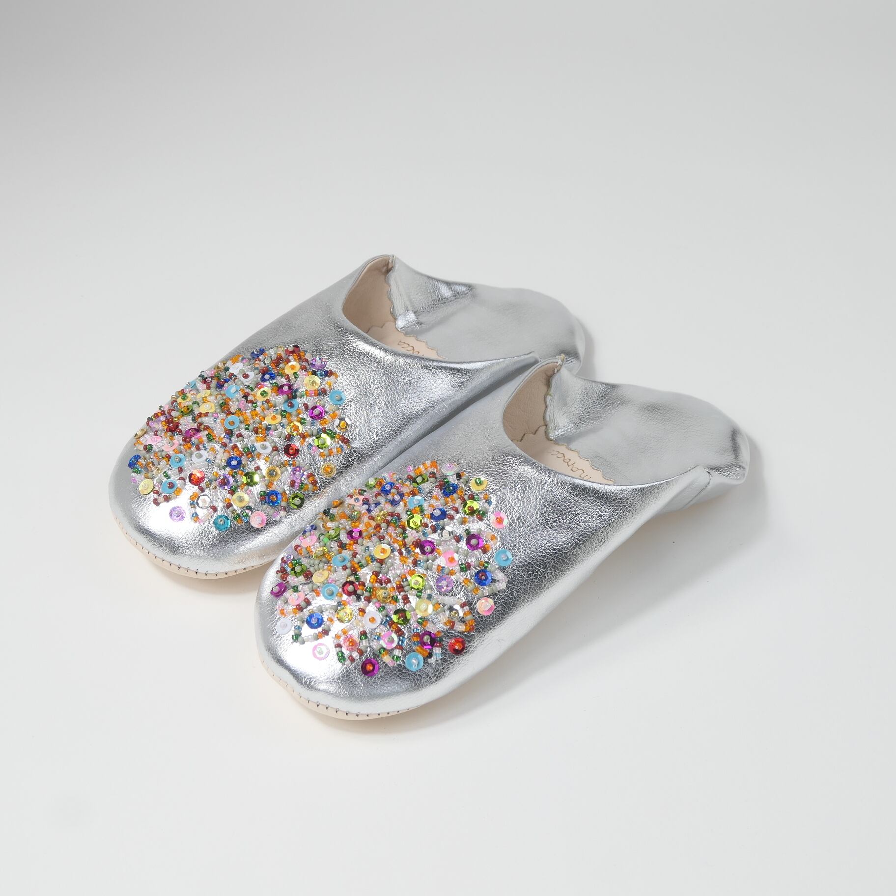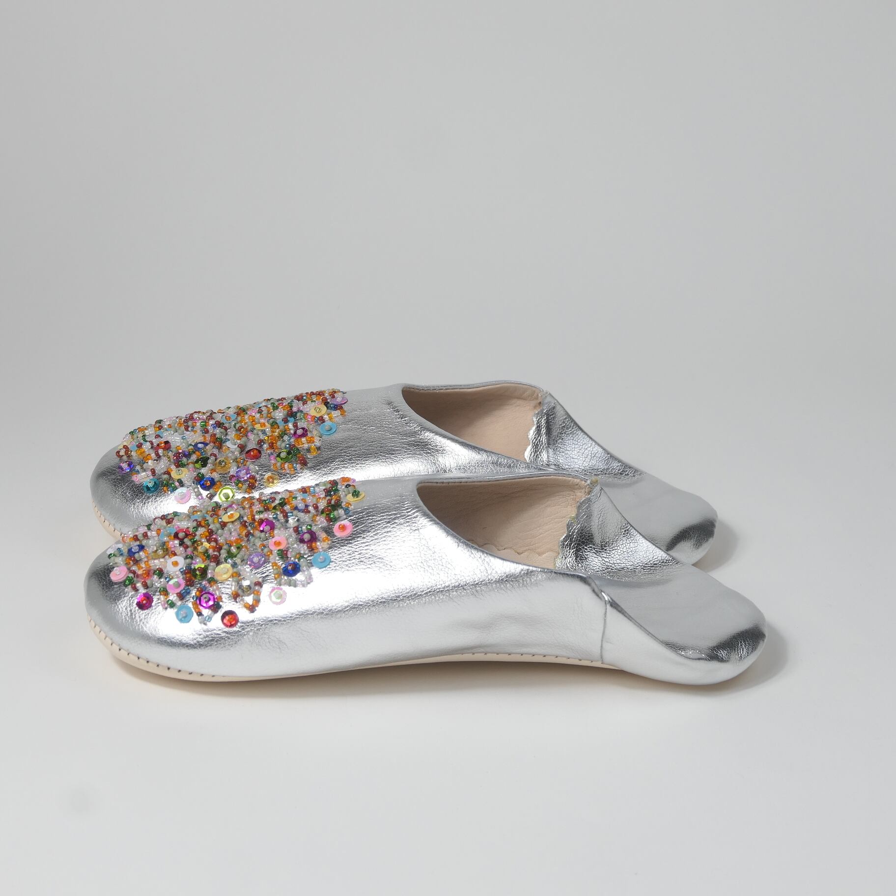 受注生産 シルバー(ミックス スパンコール)レザー バブーシュ スリッパ