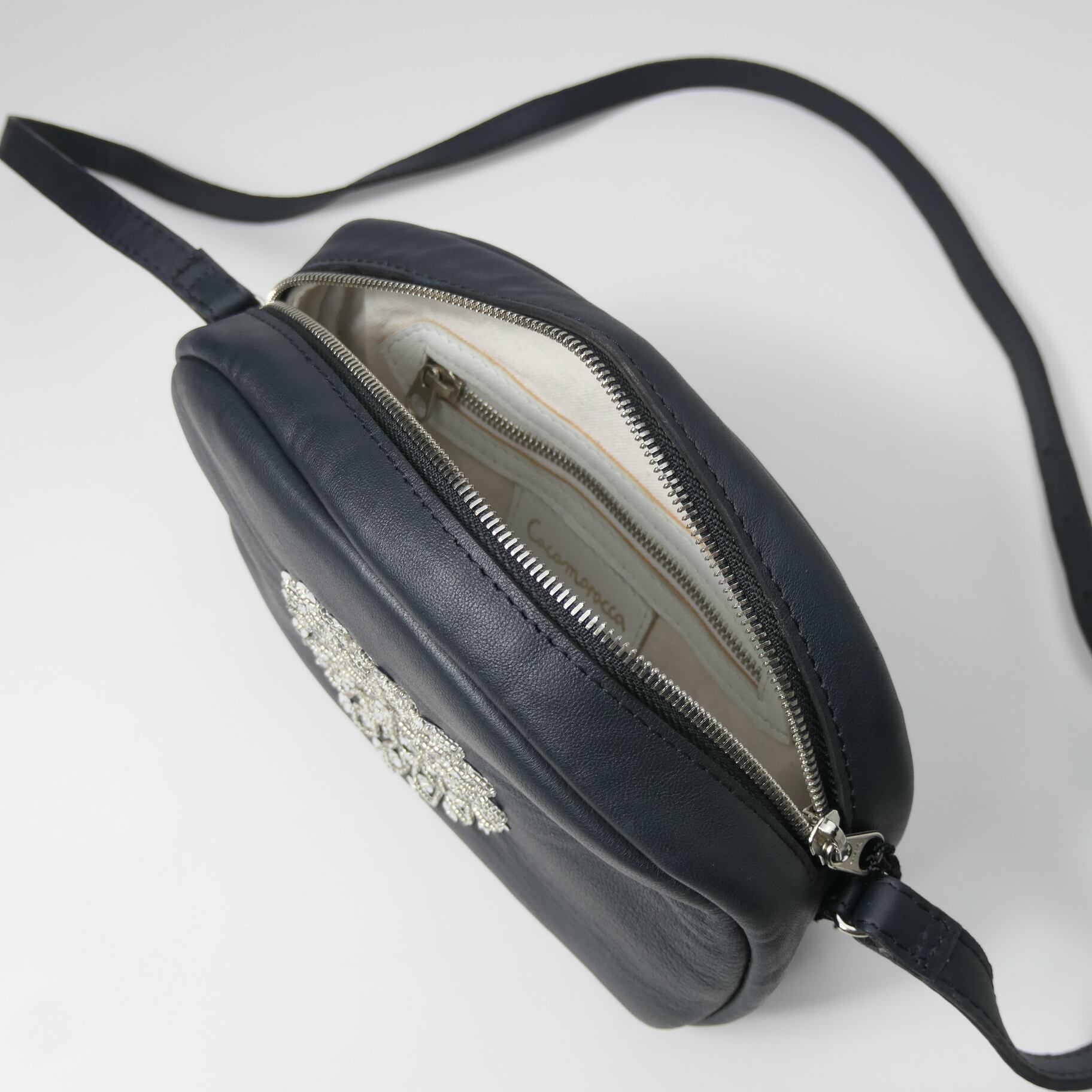 ブラック レザー ショルダー バッグ(スパンコール&ビーズ刺しゅう)モロッコ morocco