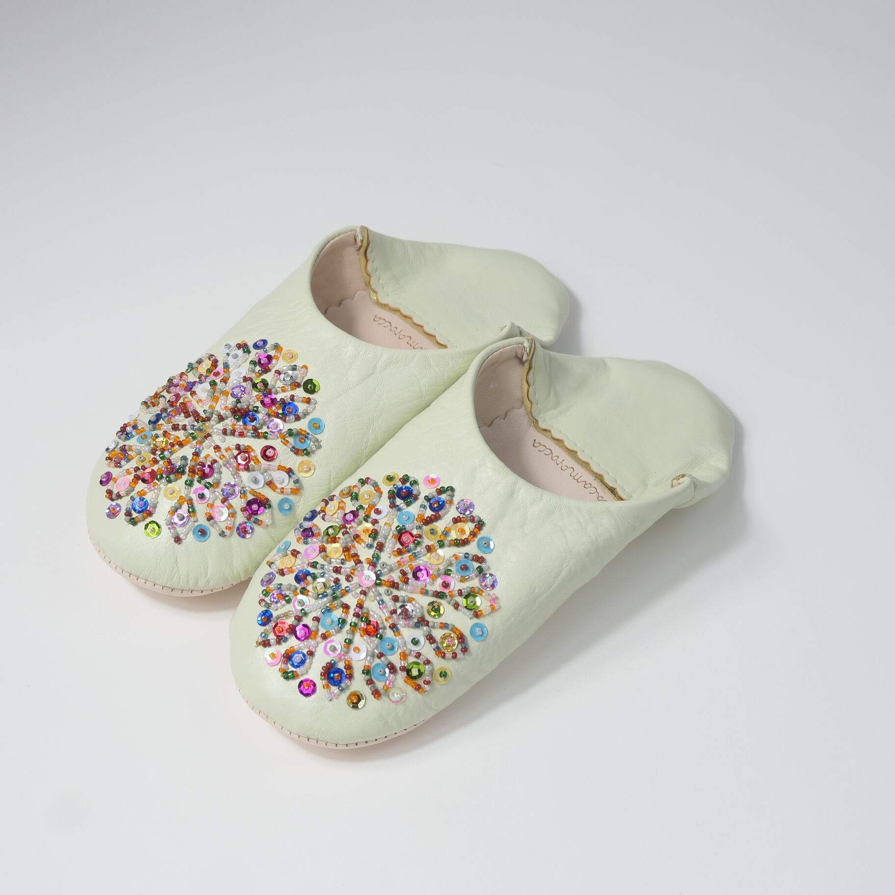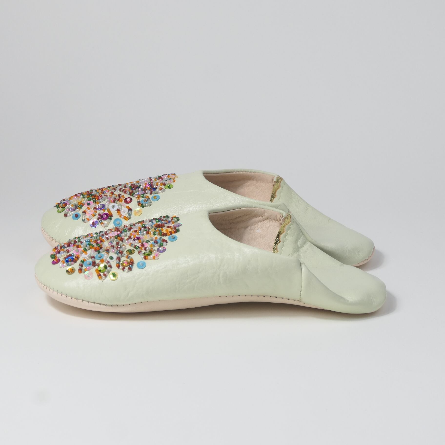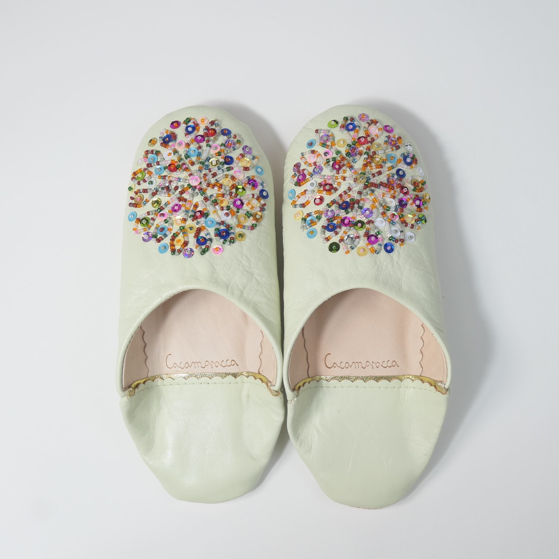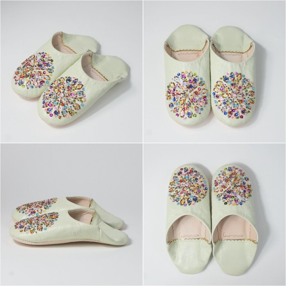受注生産 ミントクリーム(ミックス スパンコール)レザー バブーシュ スリッパ