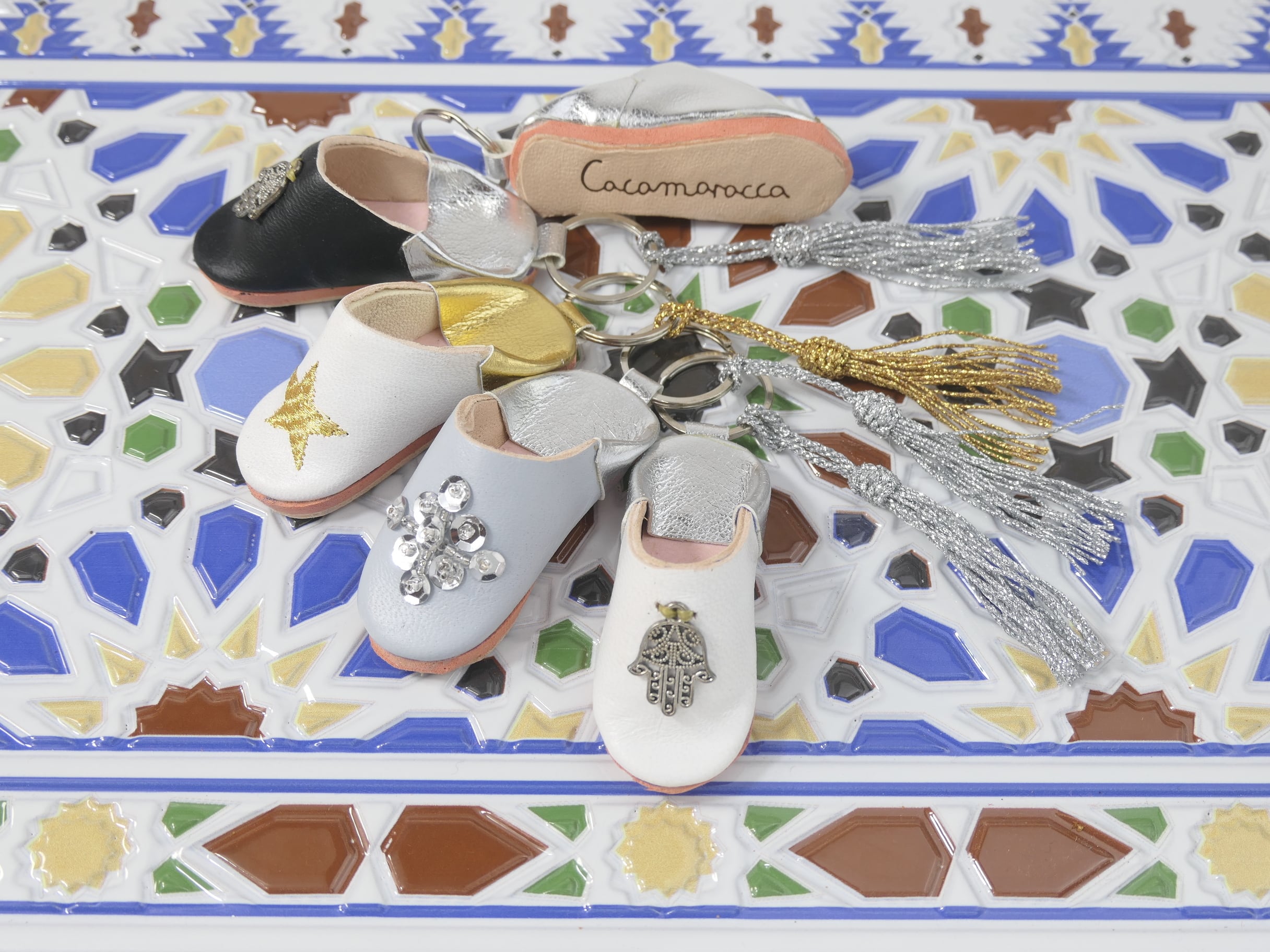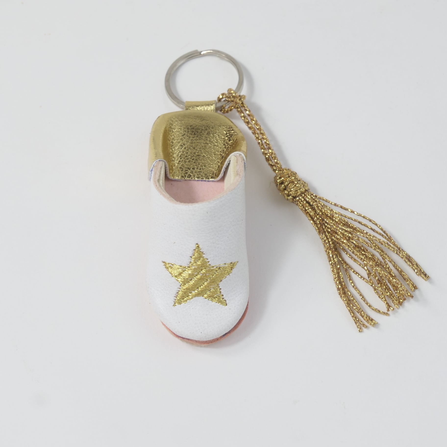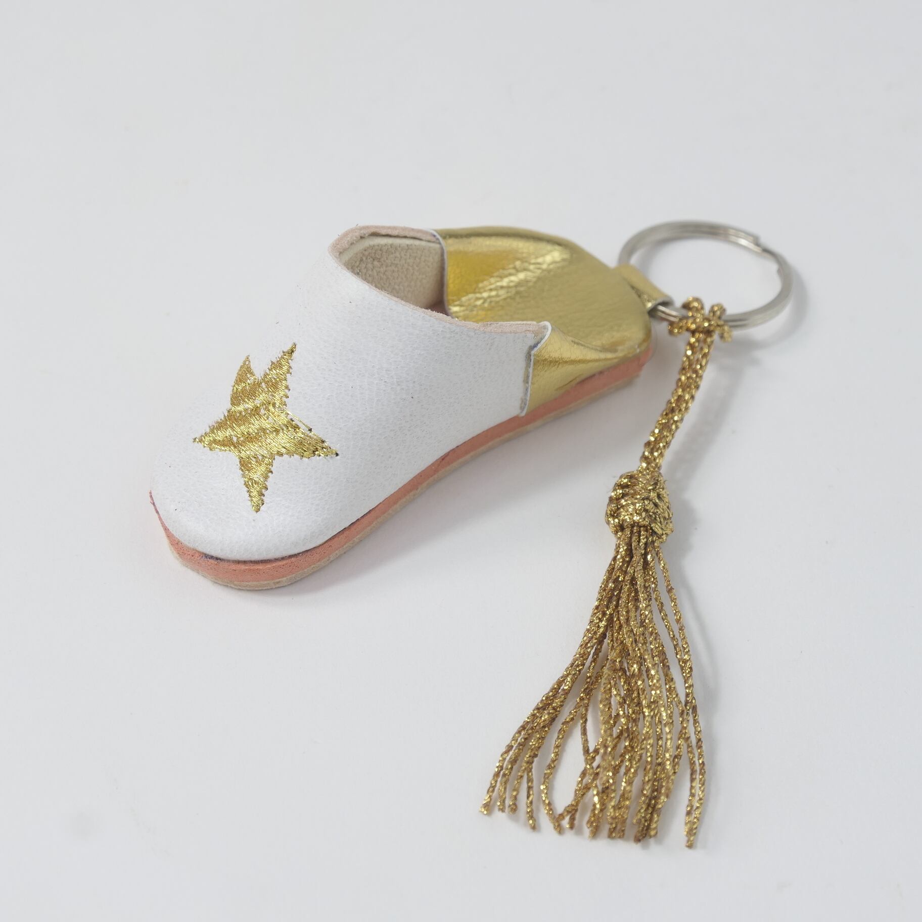 ゴールド(スター)ミニ バブーシュ キーホルダー サブラ タッセル 付き
