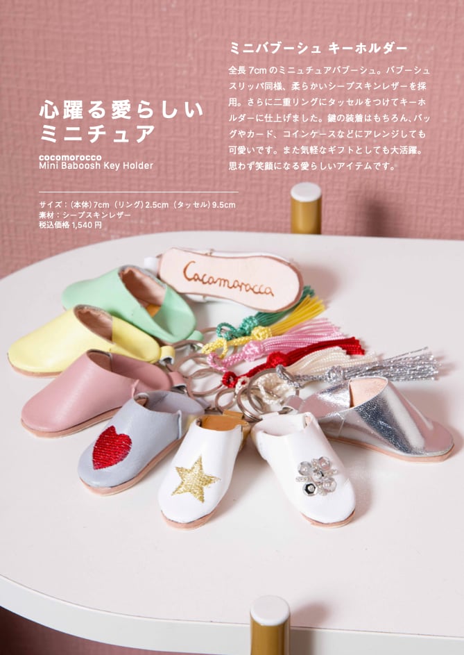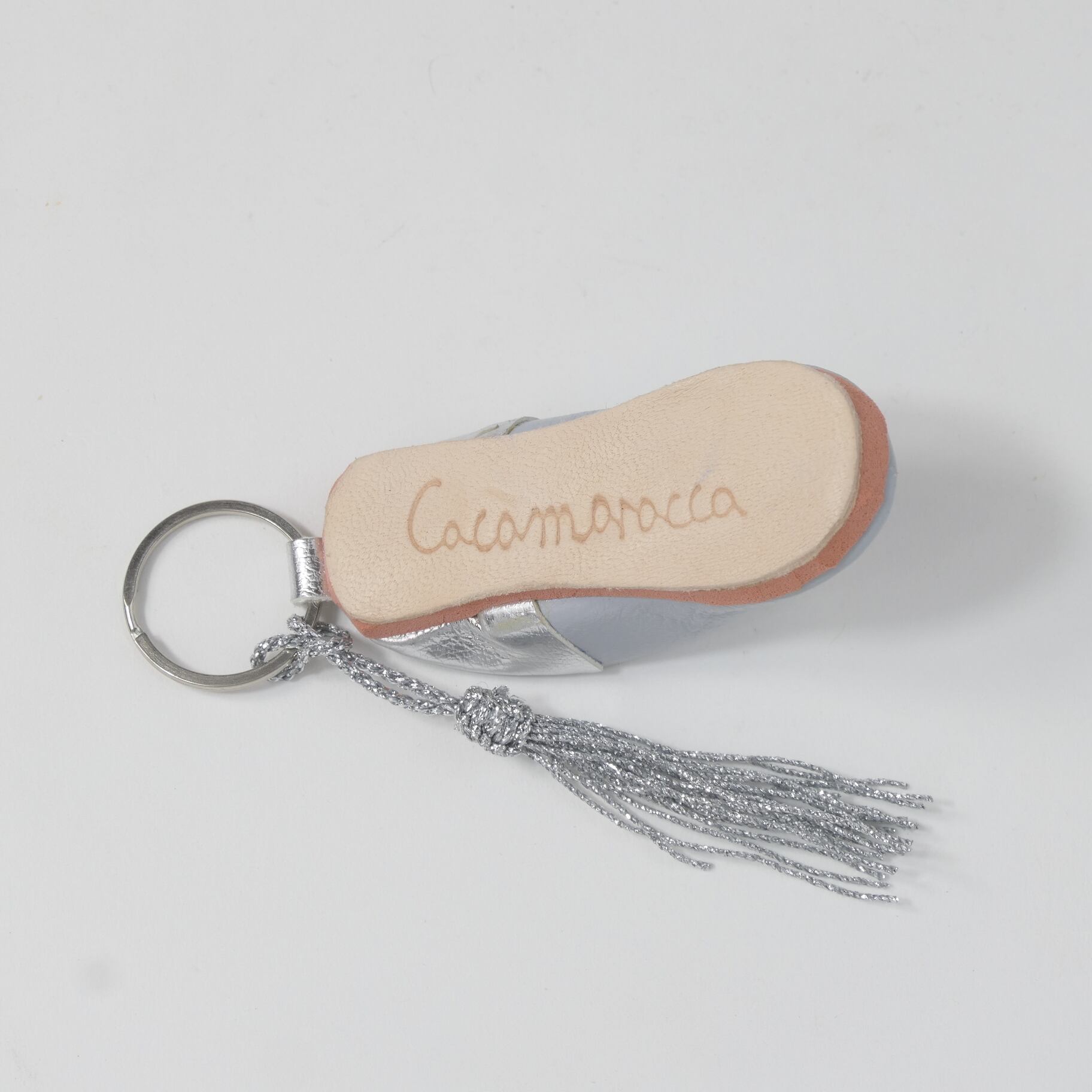 ソフトグレー(スパンコール)ミニ バブーシュ キーホルダー サブラ タッセル 付き