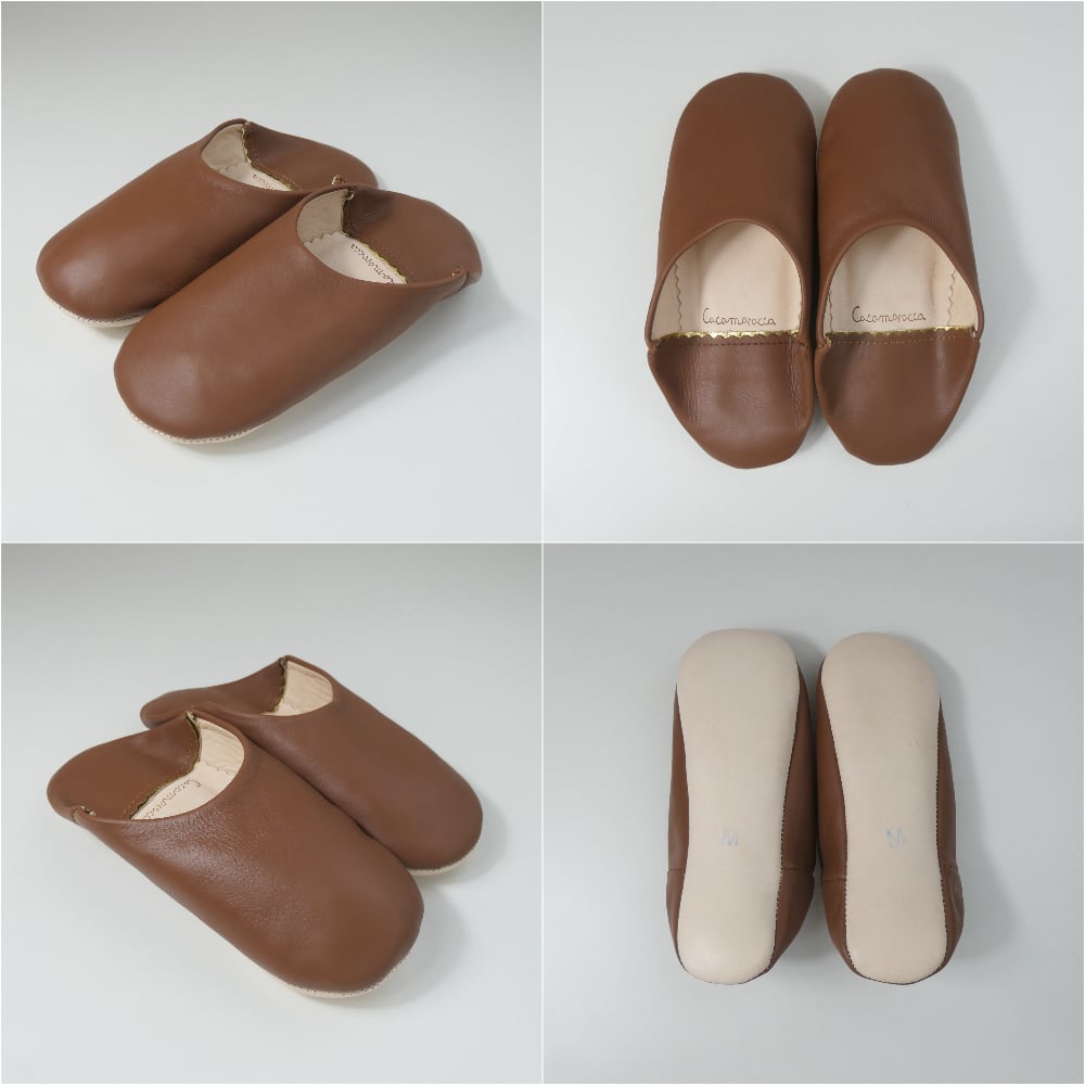 ブラウン(プレーン) レザー バブーシュ スリッパ