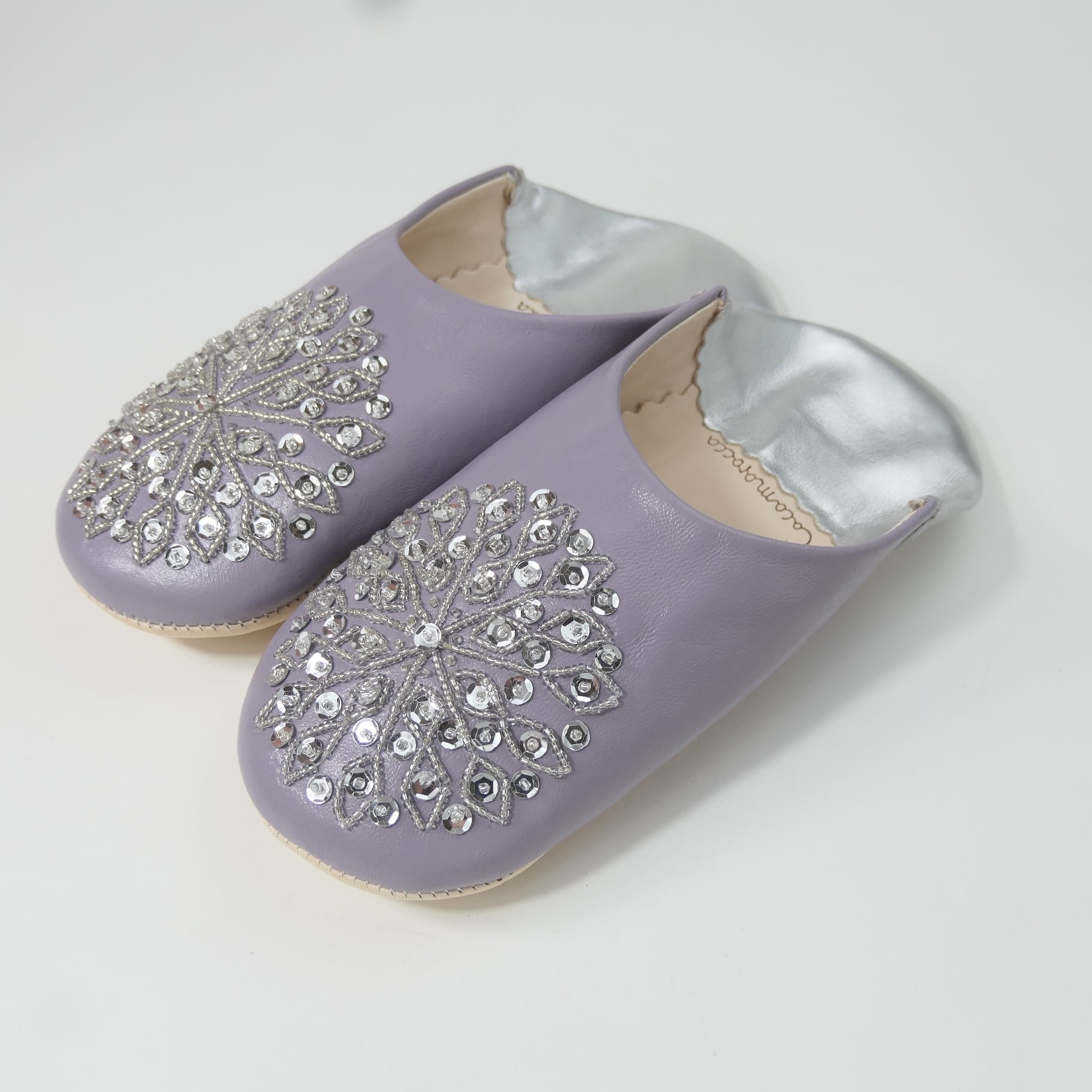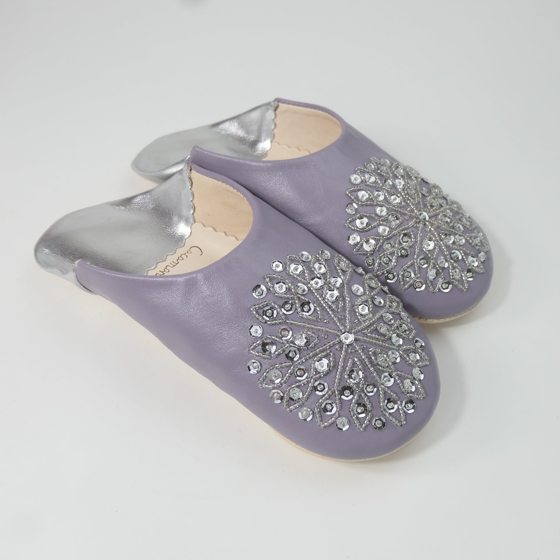 パープル&シルバー(シルバーレザー スパンコール)レザー バブーシュ スリッパ